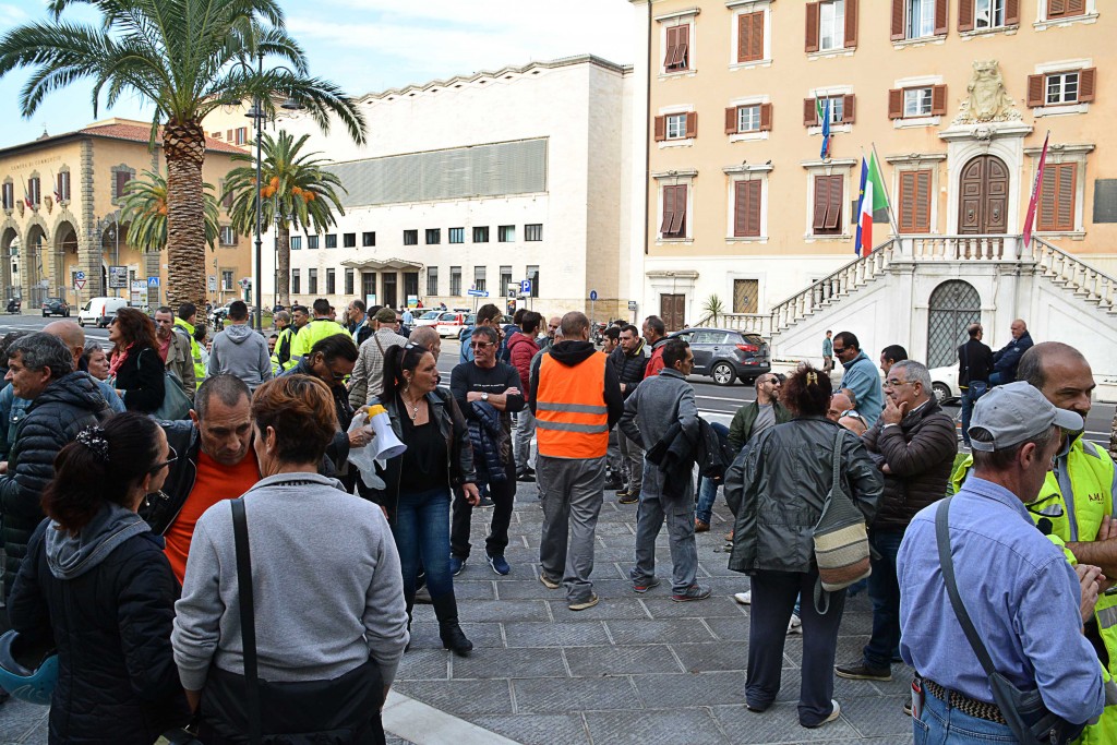 [Fotogallery] Aamps, assemblea sotto al Comune (foto Lanari)