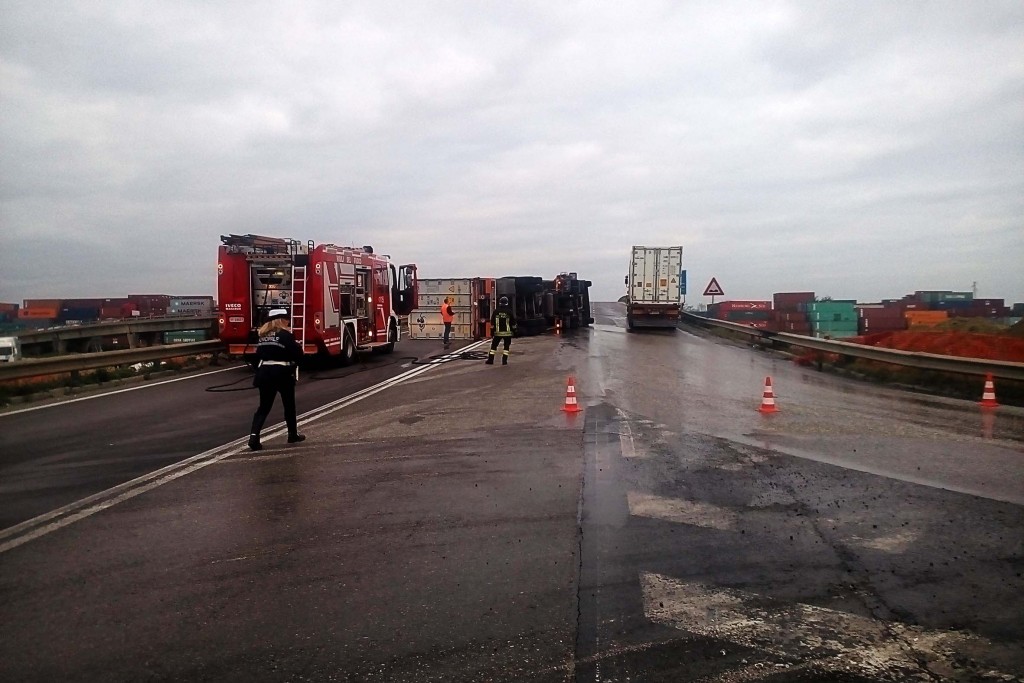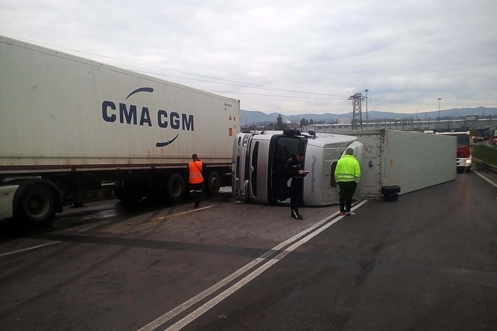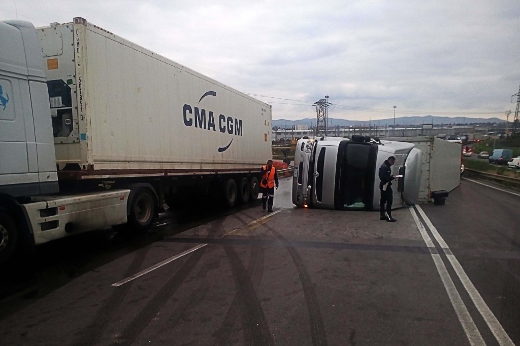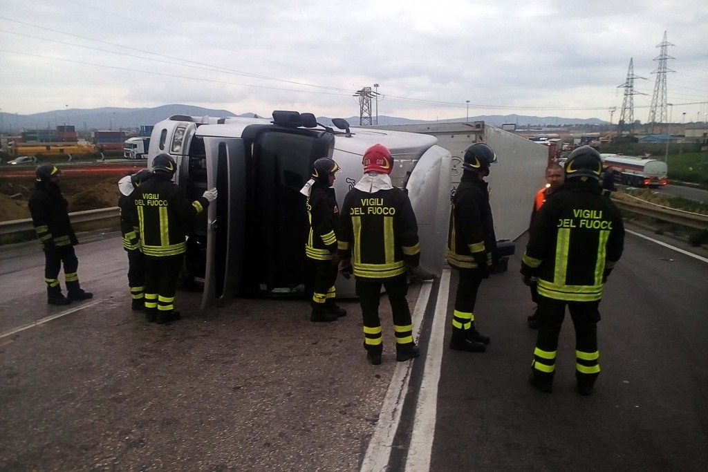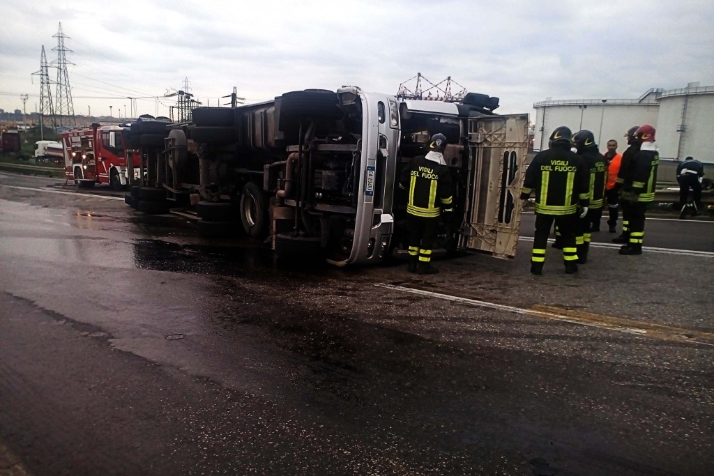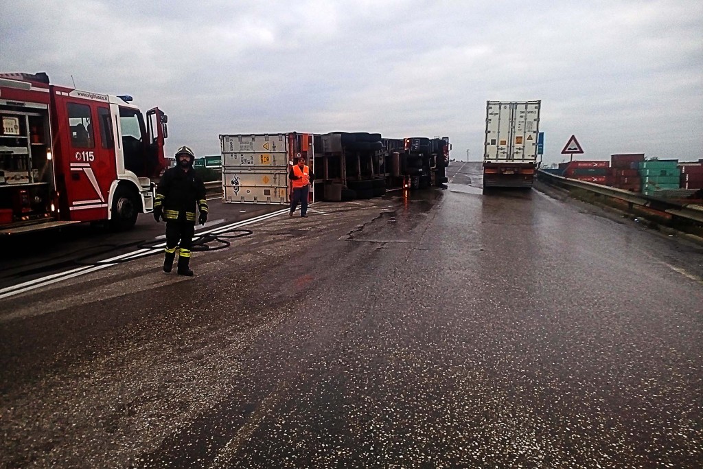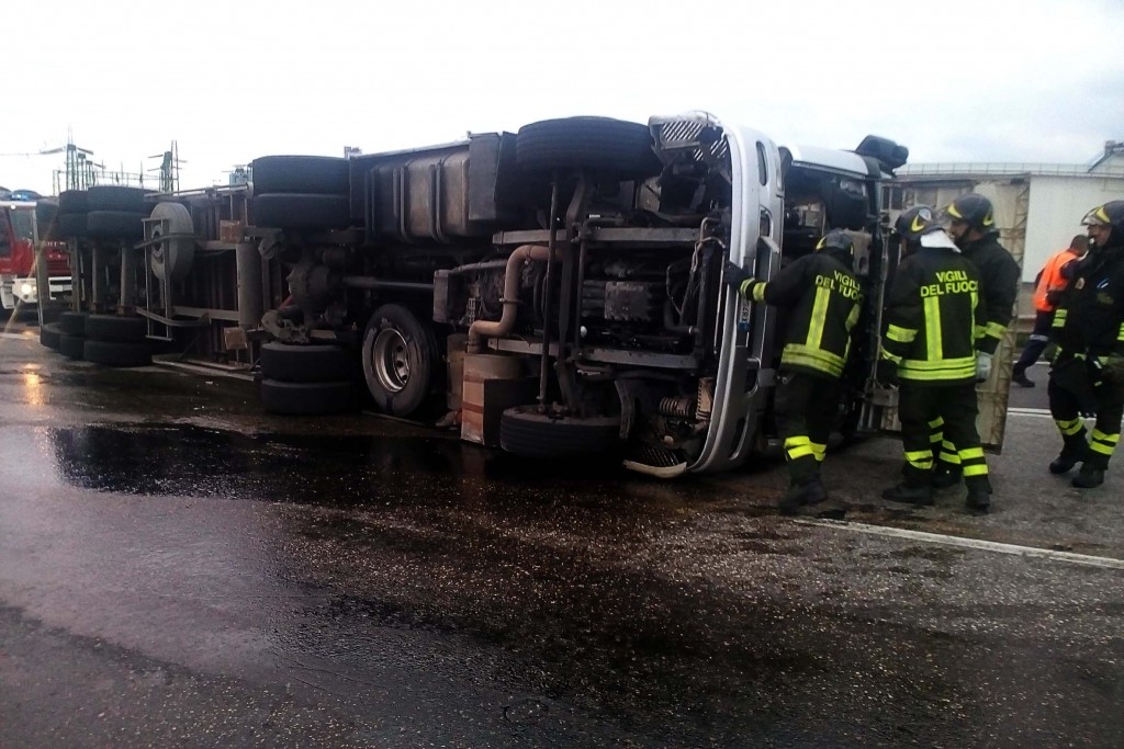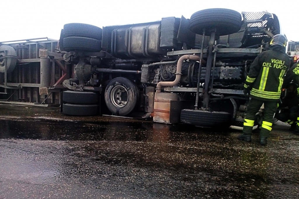 [Fotogallery] Tir ribaltato in via Da Vinci