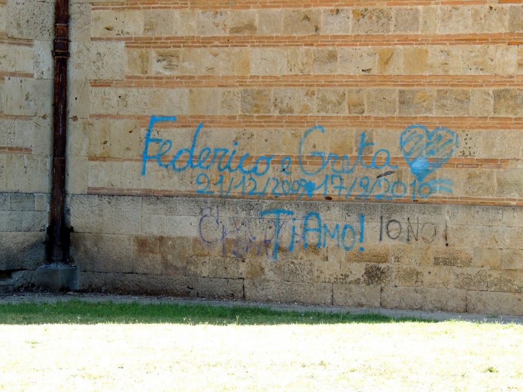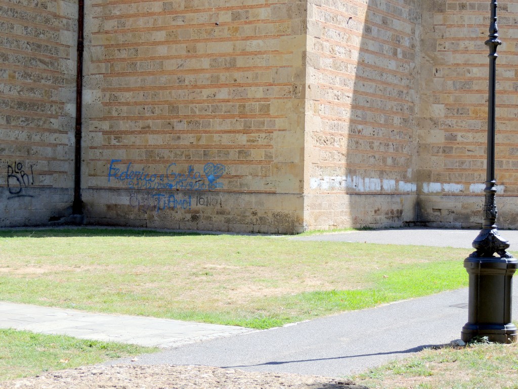 [Fotogallery] Chiesa di piazza Magenta deturpata dalle scritte (foto Mura)