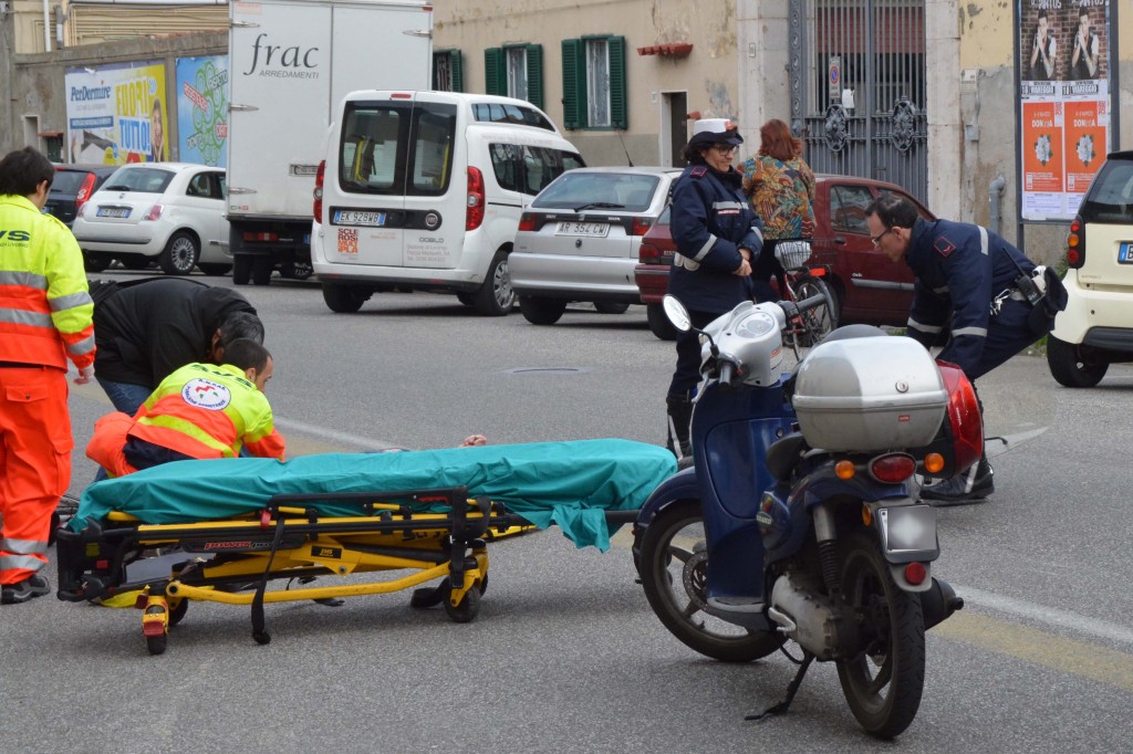 [Fotogallery] Ciclista travolto da uno scooter (foto Lanari)