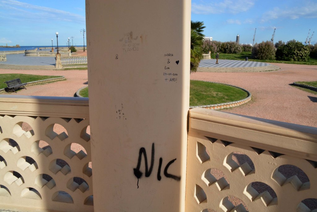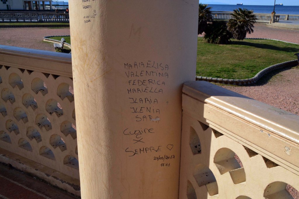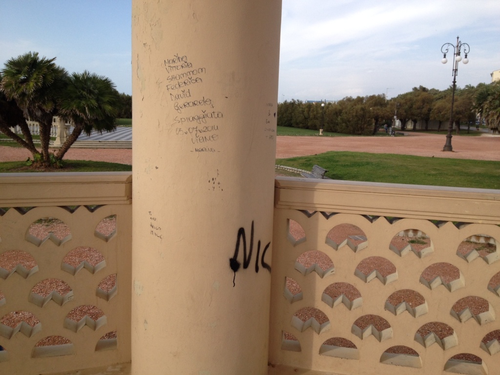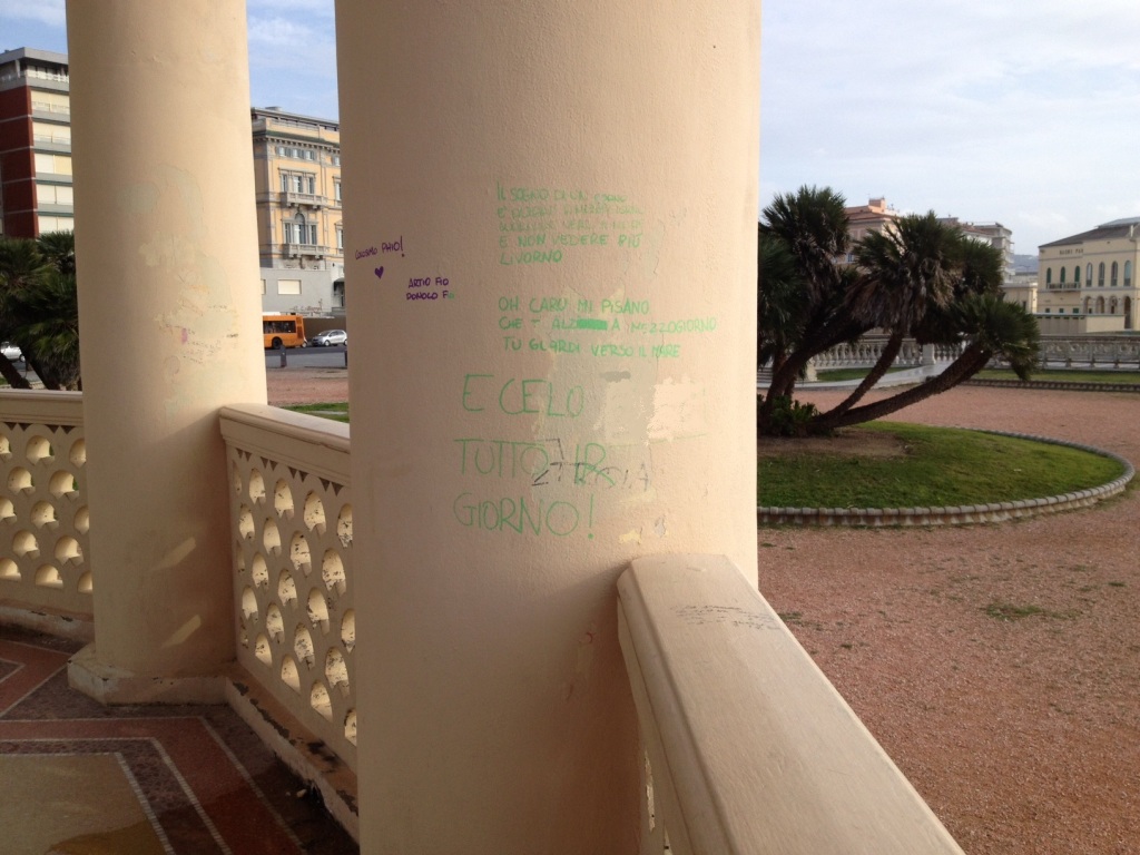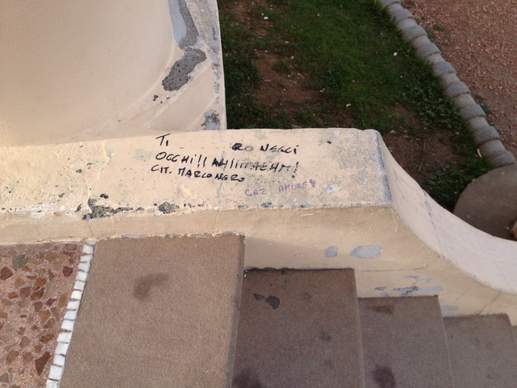 [Fotogallery] Gazebo ricoperto di scritte (foto Mura&Lanari)