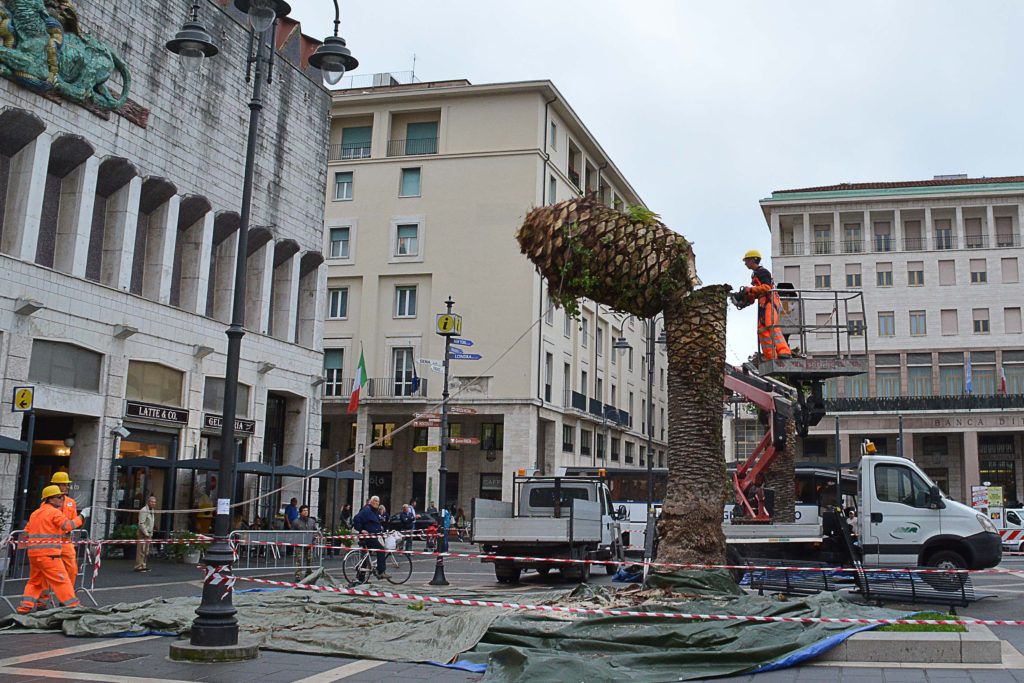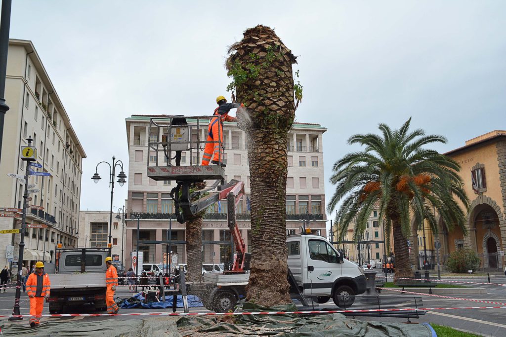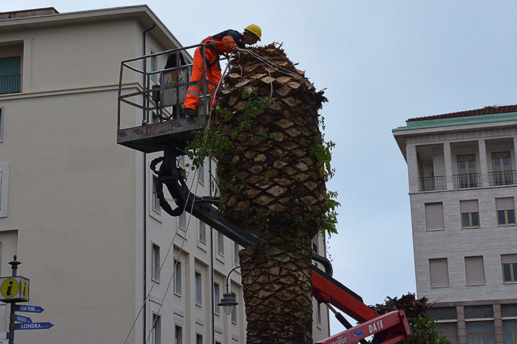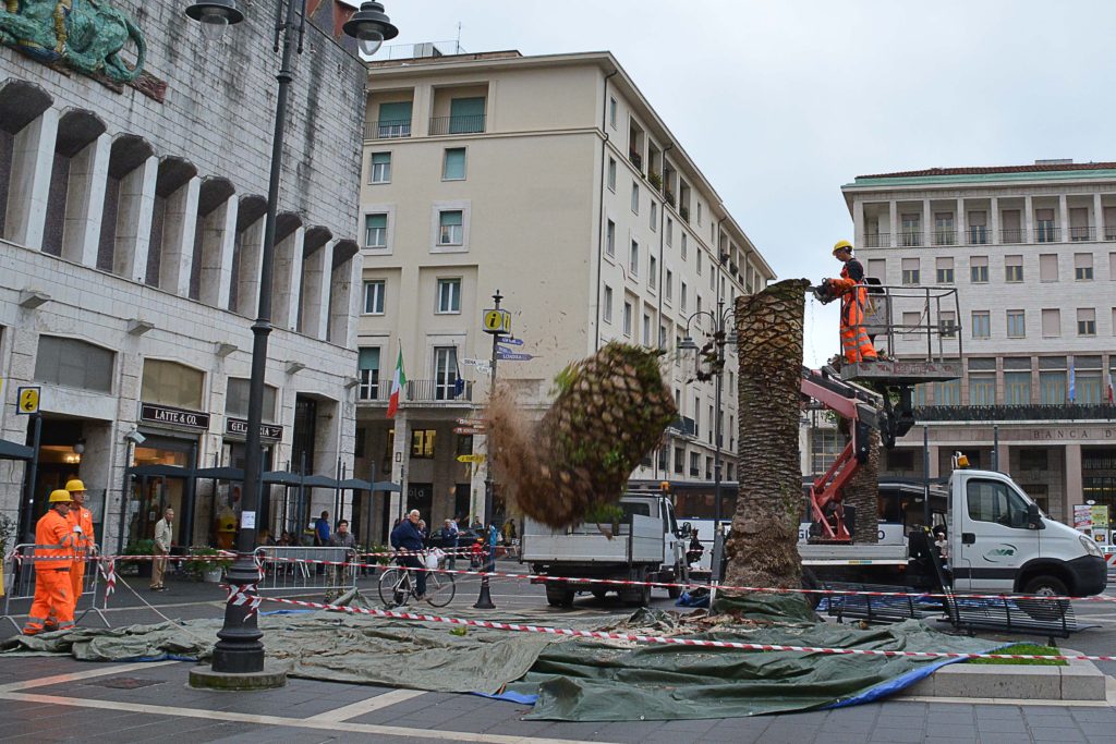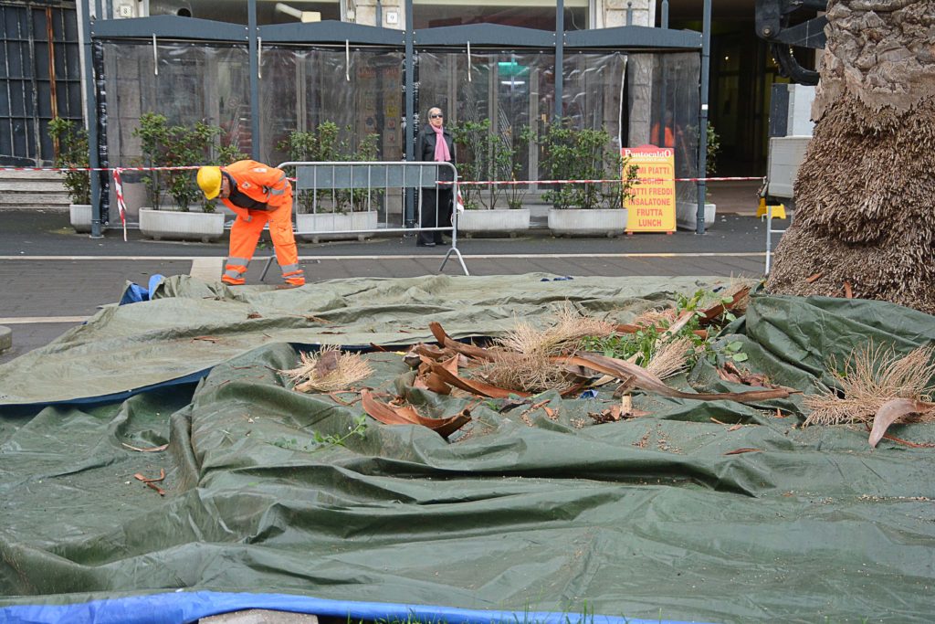 [Fotogallery] Giù le prime tre palme in città (foto Lanari)