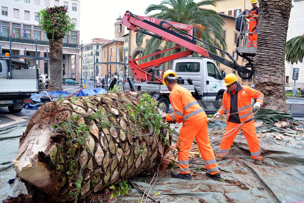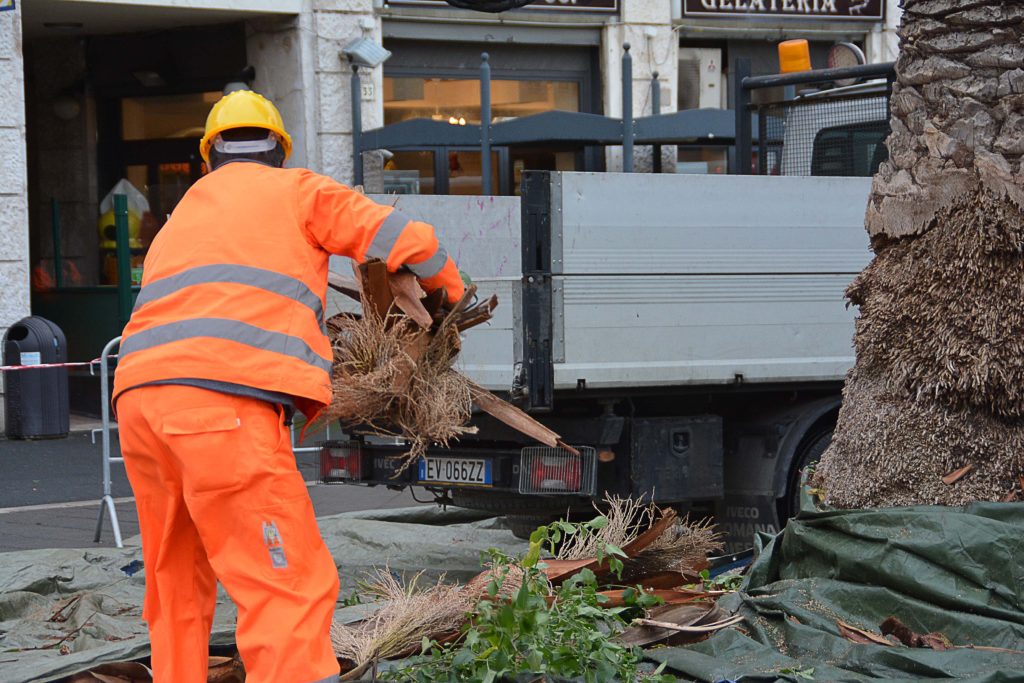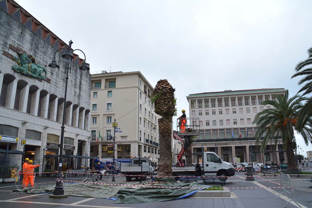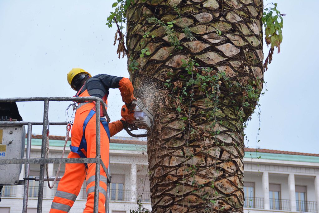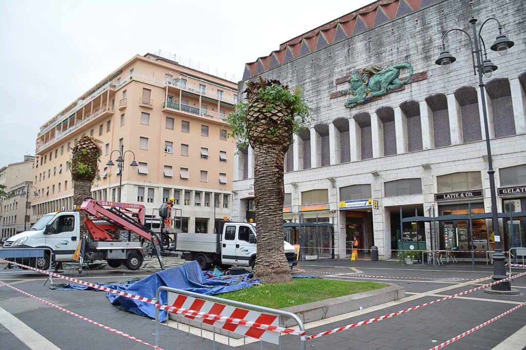 [Fotogallery] Giù le prime tre palme in città (foto Lanari)