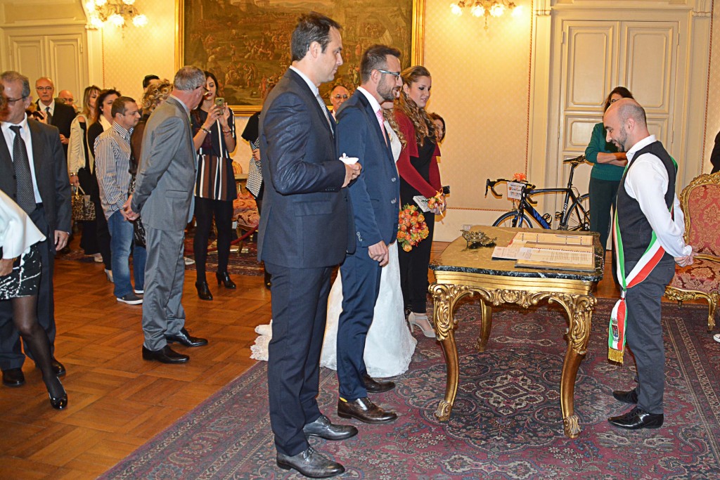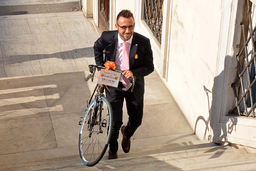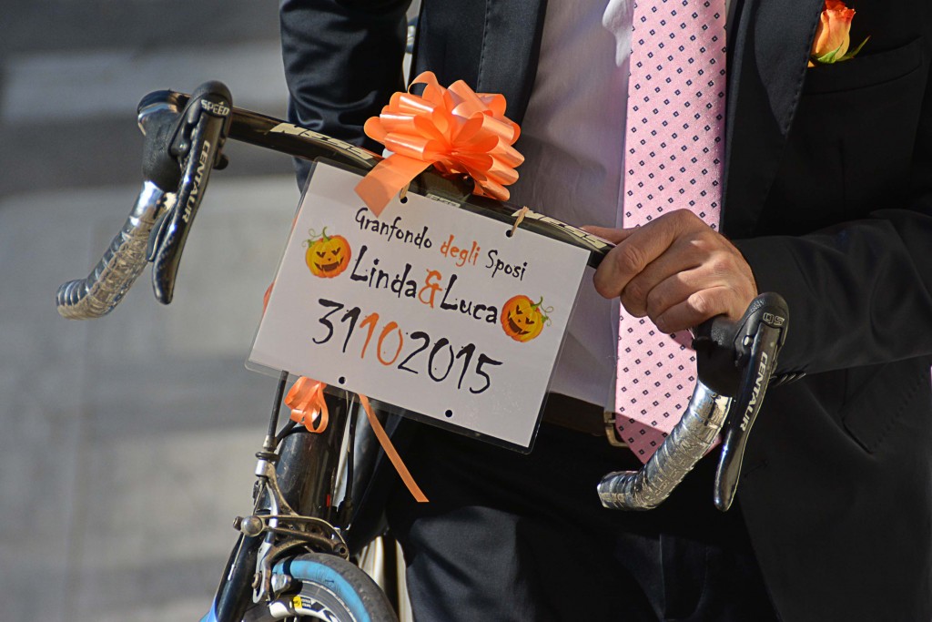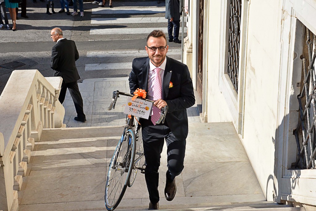 [Fotogallery] Lo sposo arriva in bici (foto Lanari)