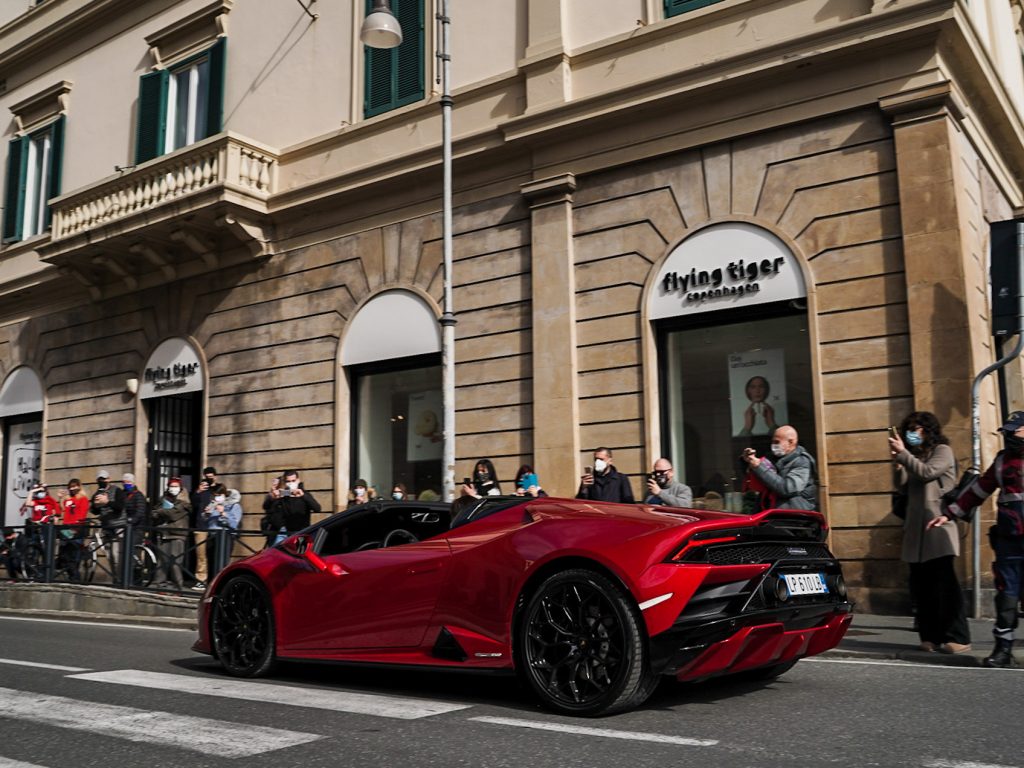 [Fotogallery] Lo spot Lamborghini a Livorno. Il bolide sfreccia in città (foto Amore Bianco)