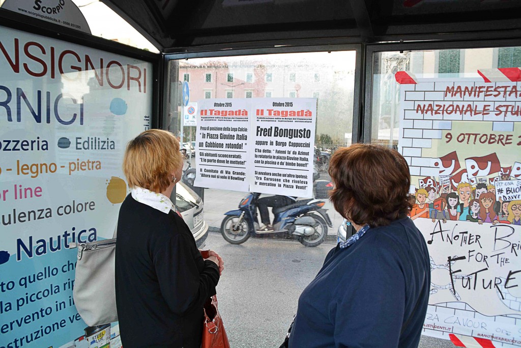 [Fotogallery] Locandine satiriche “anti-rotatoria” (foto Lanari)