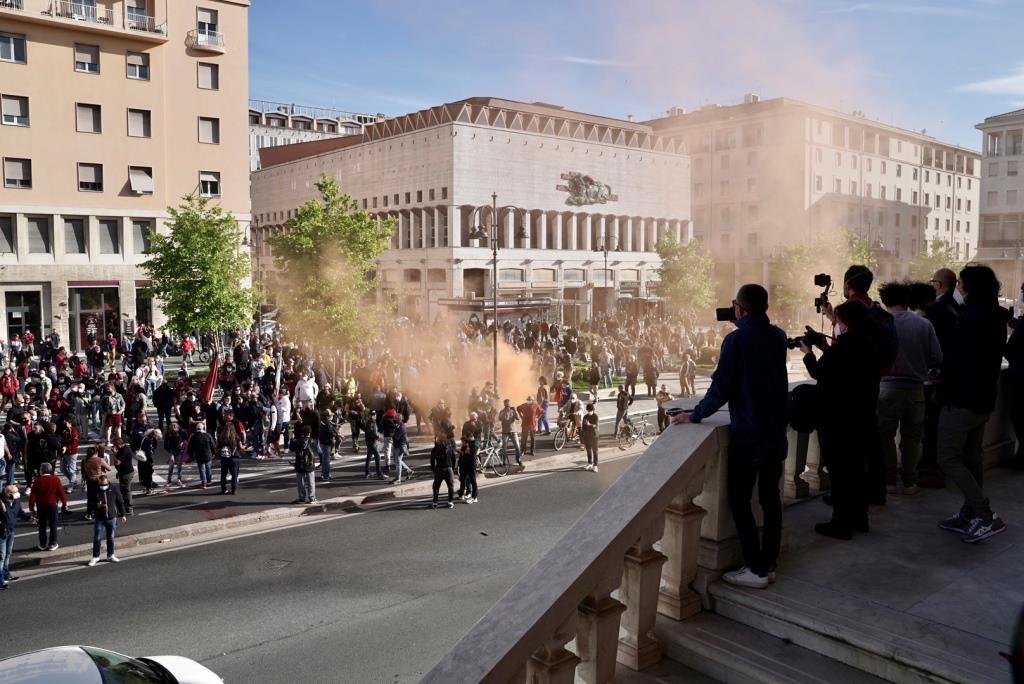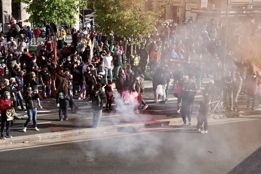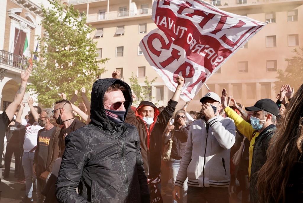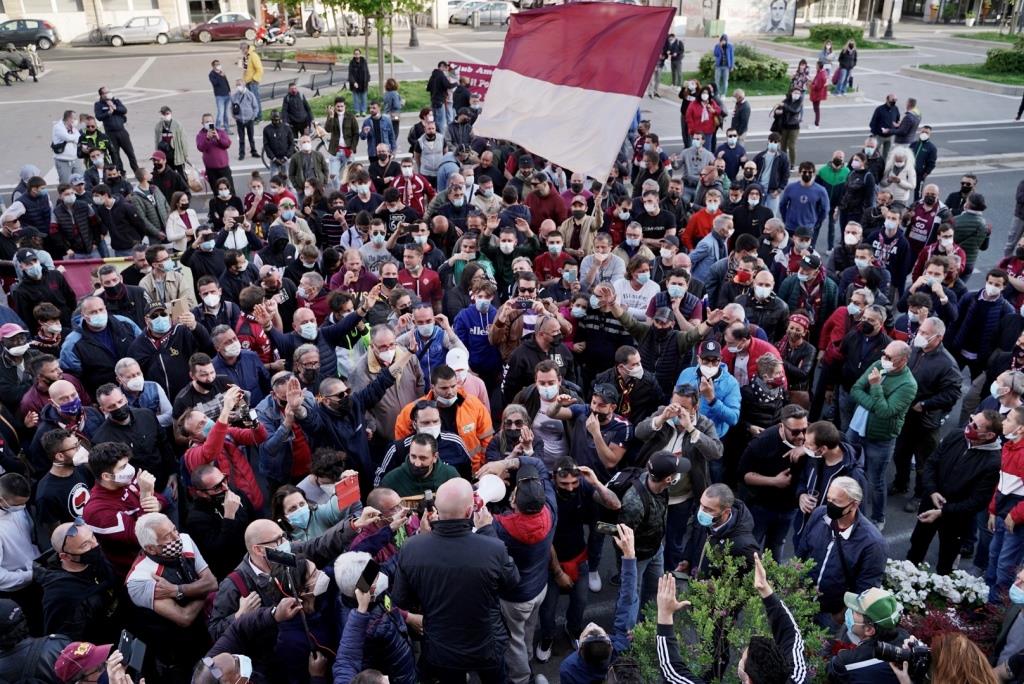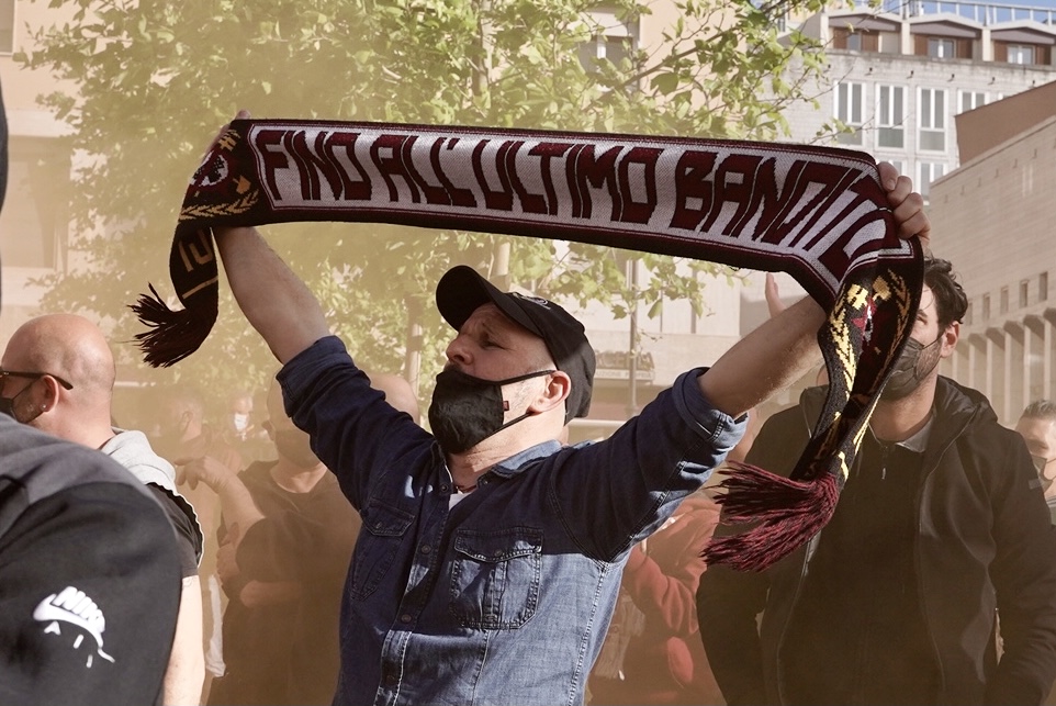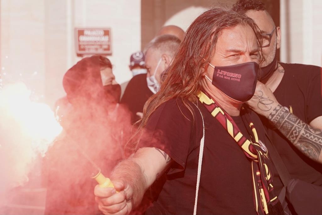 [Fotogallery] Protesta dei tifosi amaranto sotto al Comune (foto Lorenzo Amore Bianco)