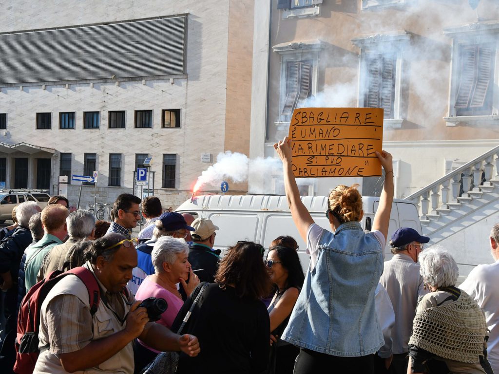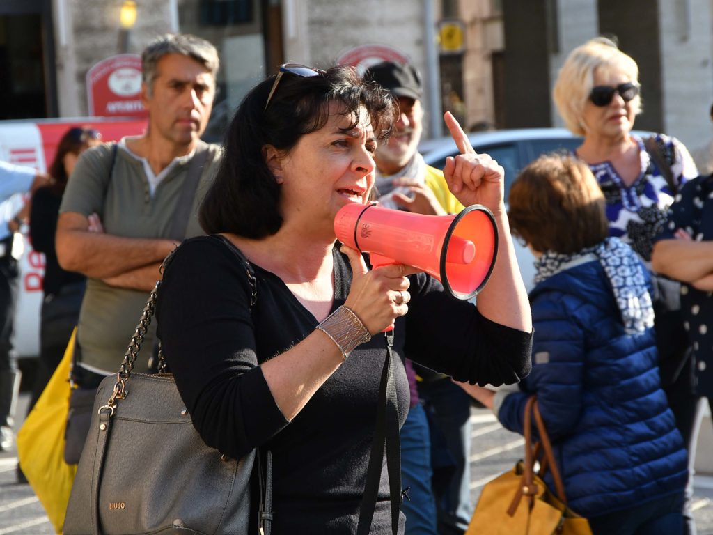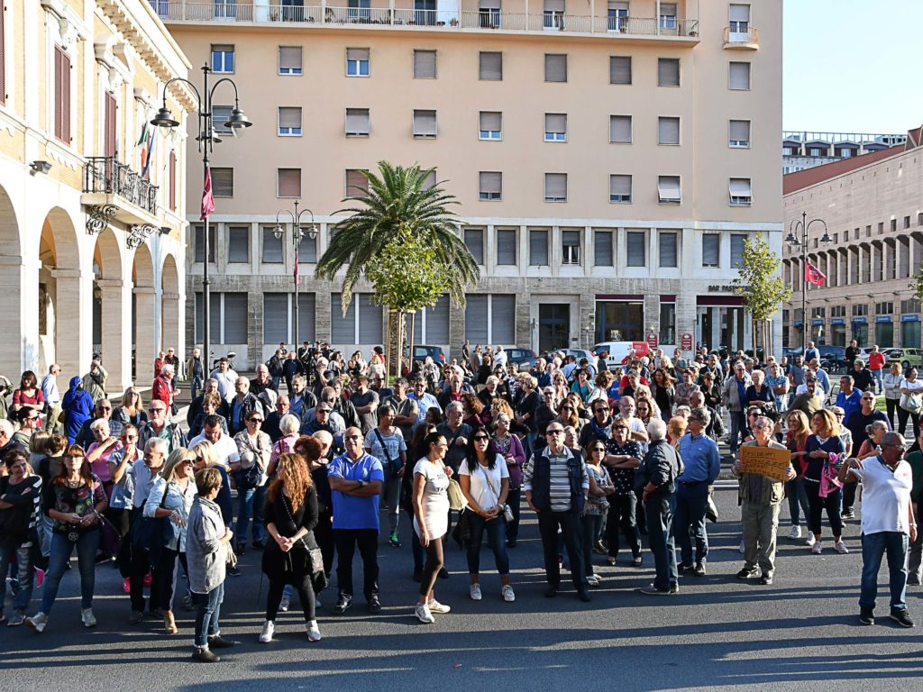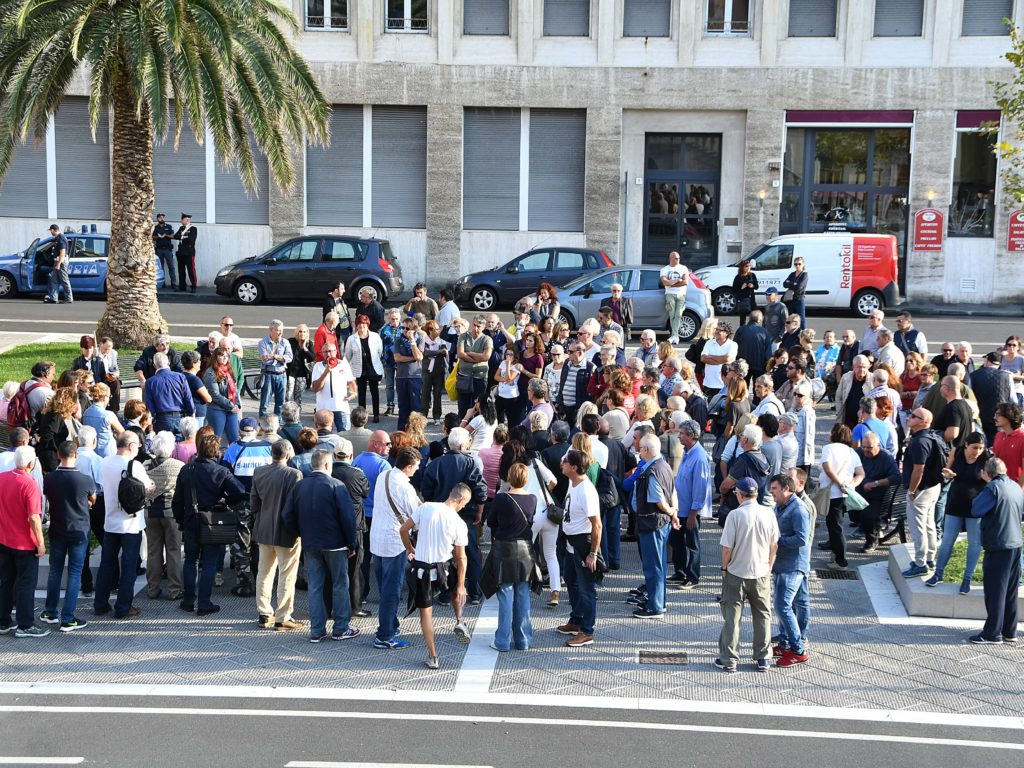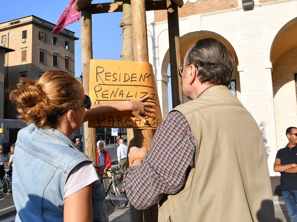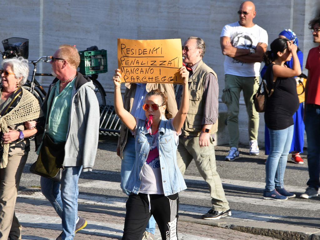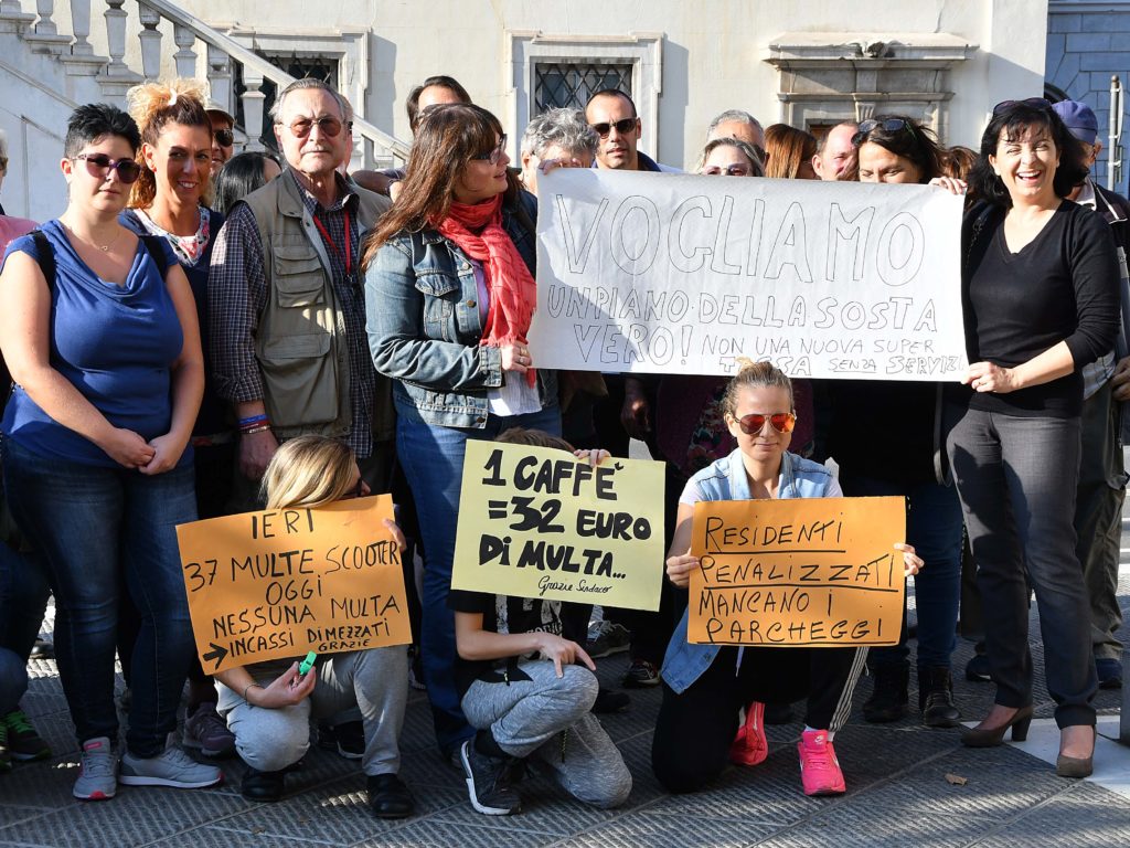 [Fotogallery] Protesta di commercianti e residenti contro gli stalli blu (foto Lanari)