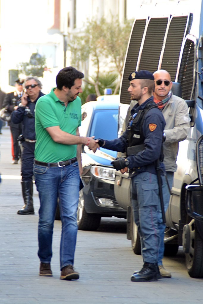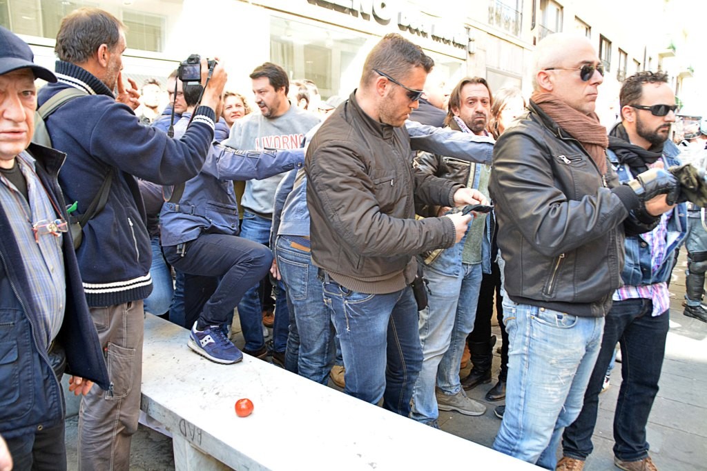 [Fotogallery] Salvini arriva a Livorno tra fischi e pomodori