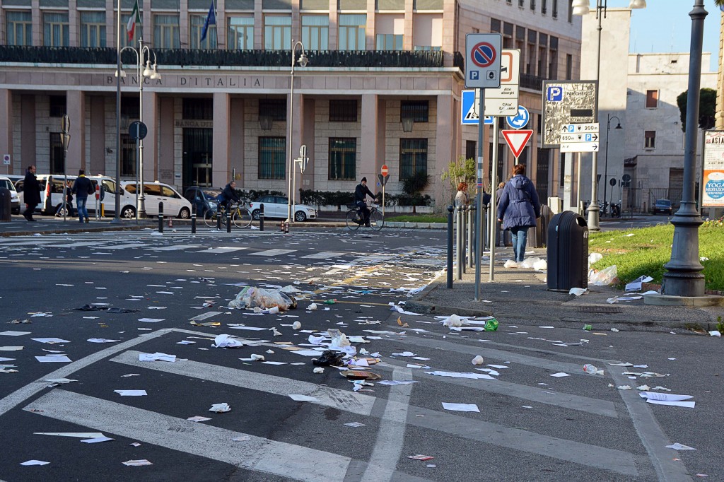 [Fotogallery] Spazzatura in pieno centro e protesta in Comune
