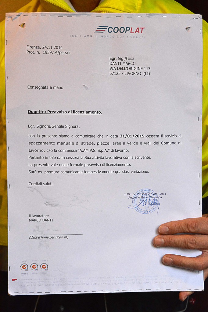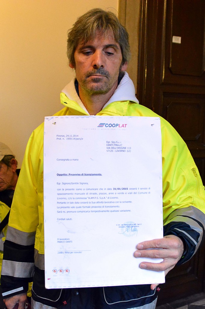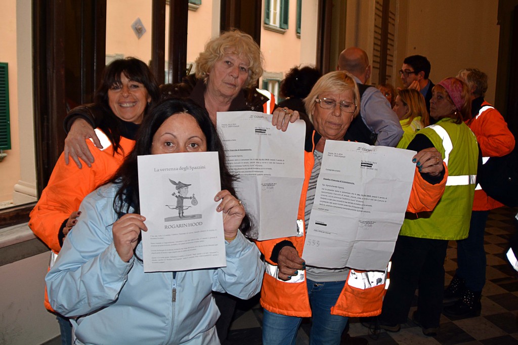 [Fotogallery] Spazzini in Comune con le lettere di licenziamento (Foto Lanari)