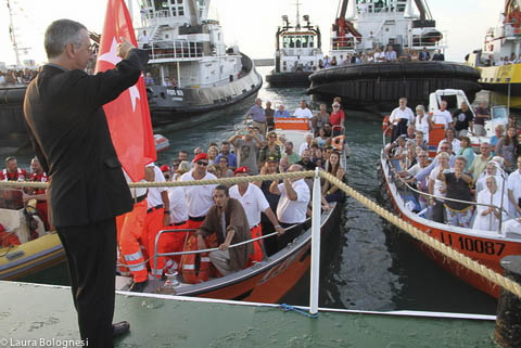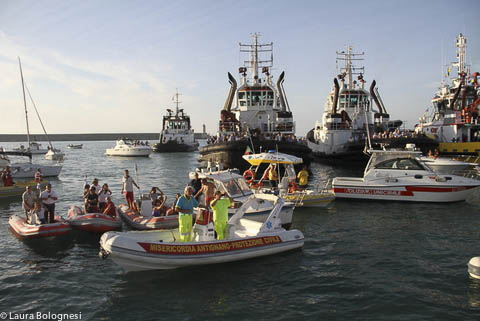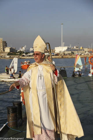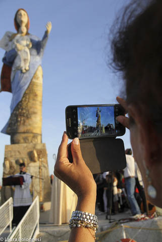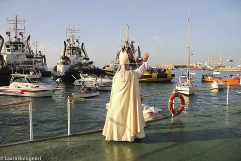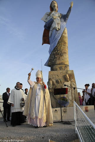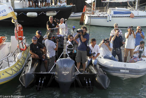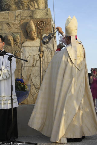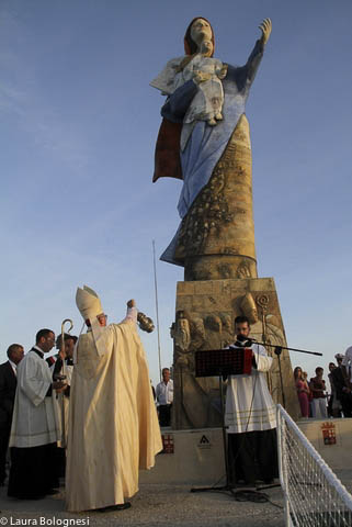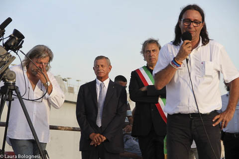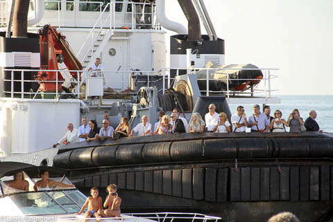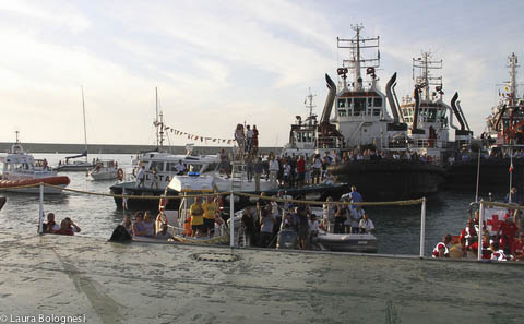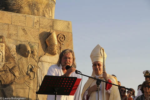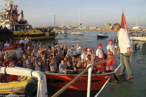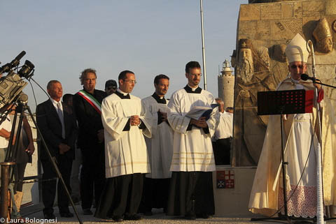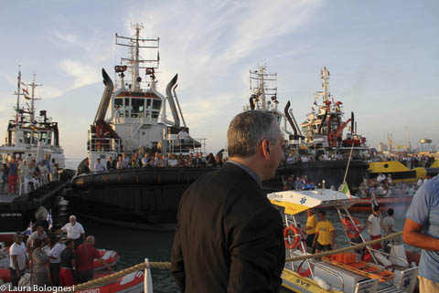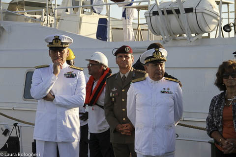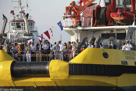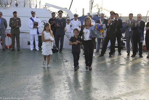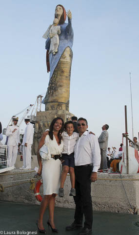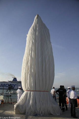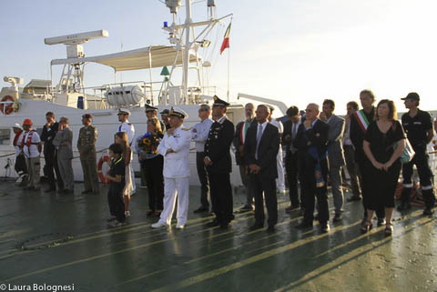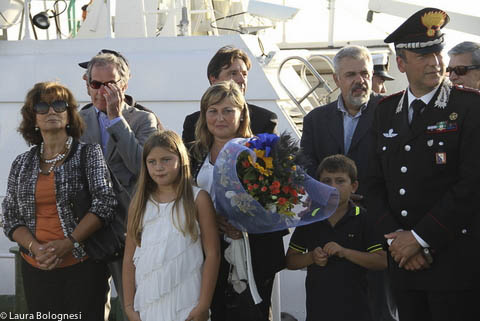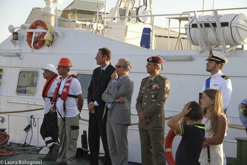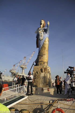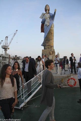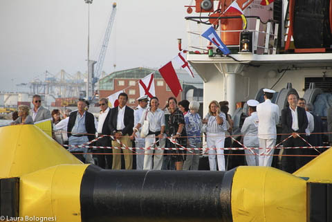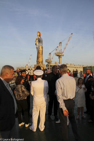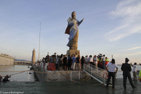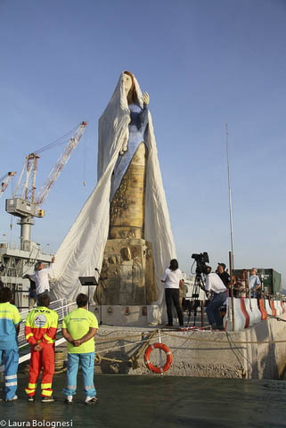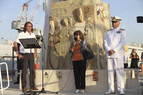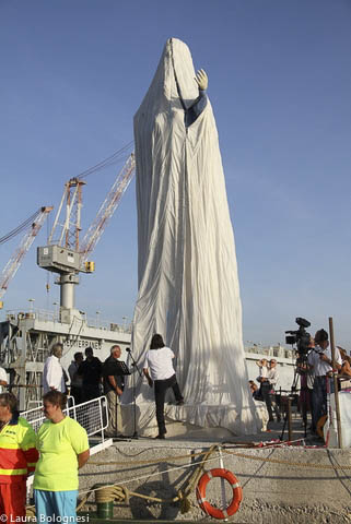 [Fotogallery] Statua in porto, autorità e cittadini assistono (foto Bolognesi)
