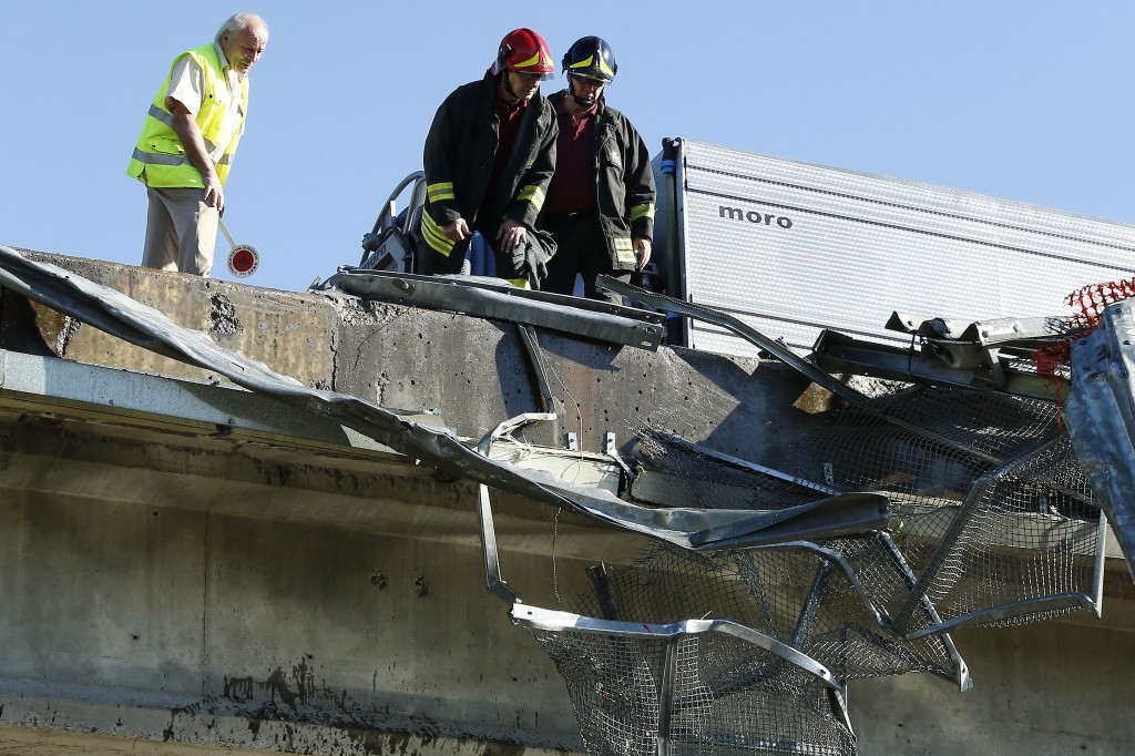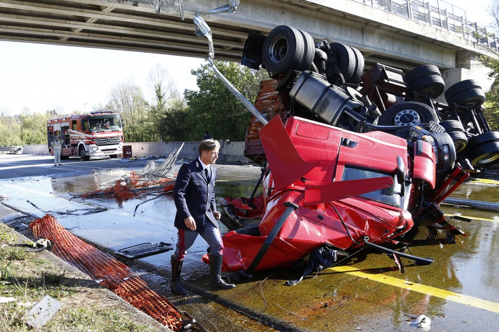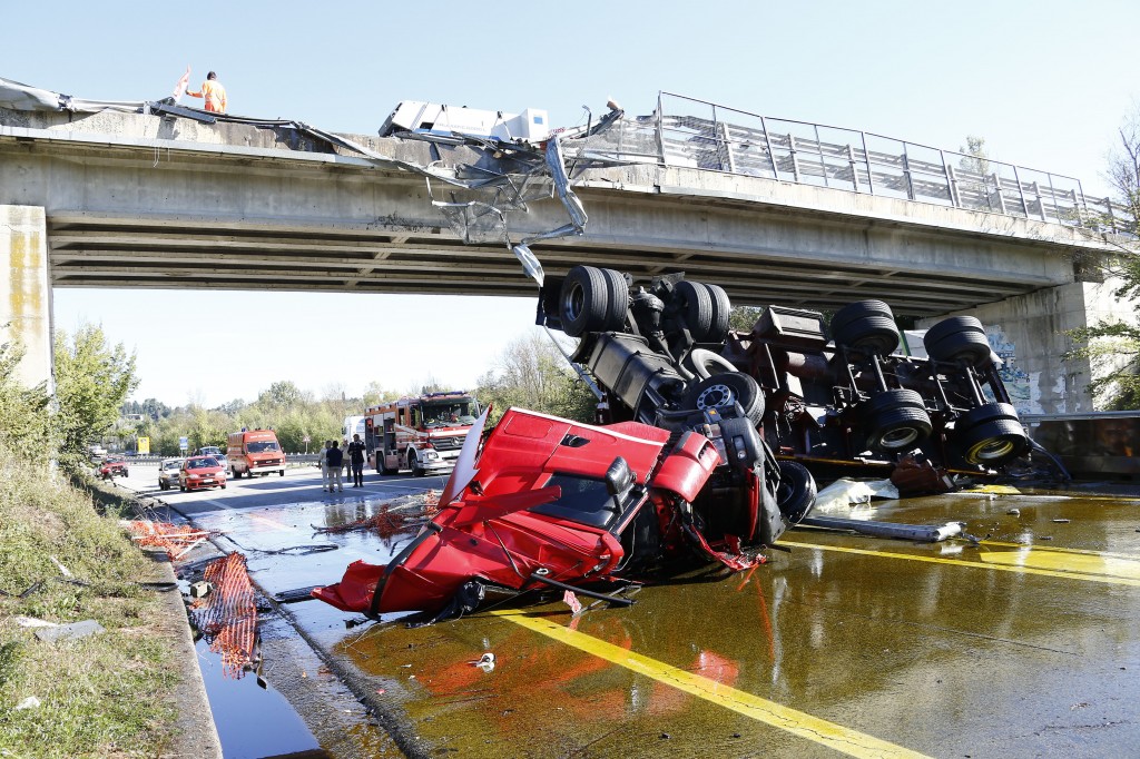 [Fotogallery] Tir cade dal cavalcavia, muore livornese (foto La Nazione)