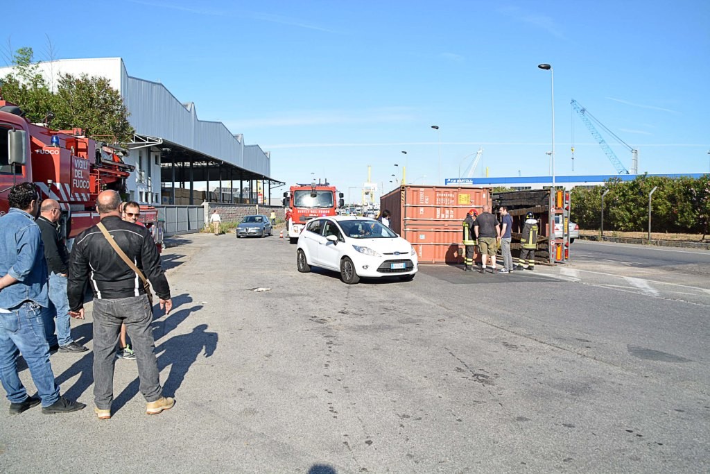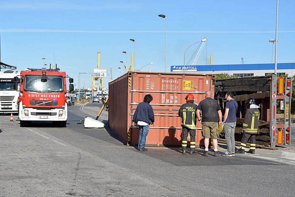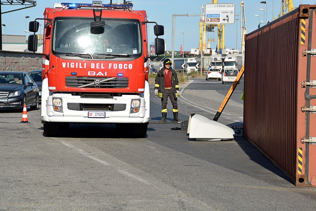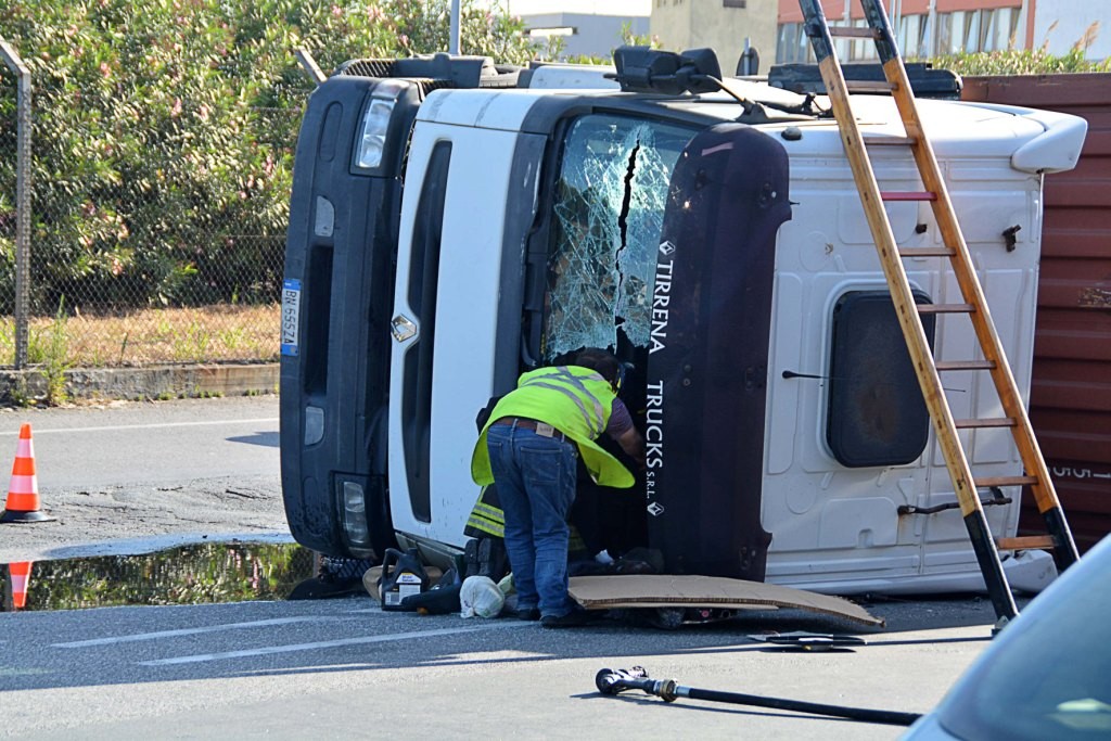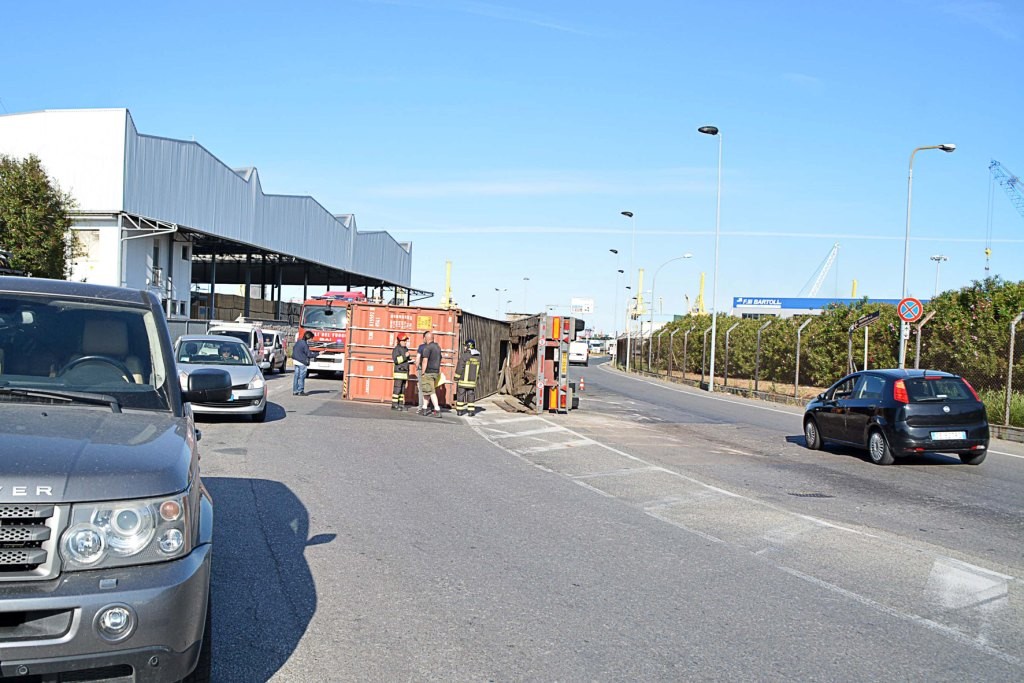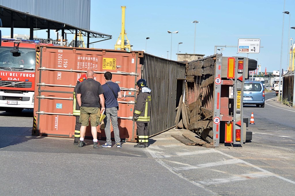 [Fotogallery] Tir si ribalta in via Leonardo da Vinci (foto Lanari)