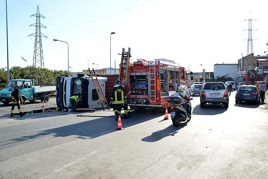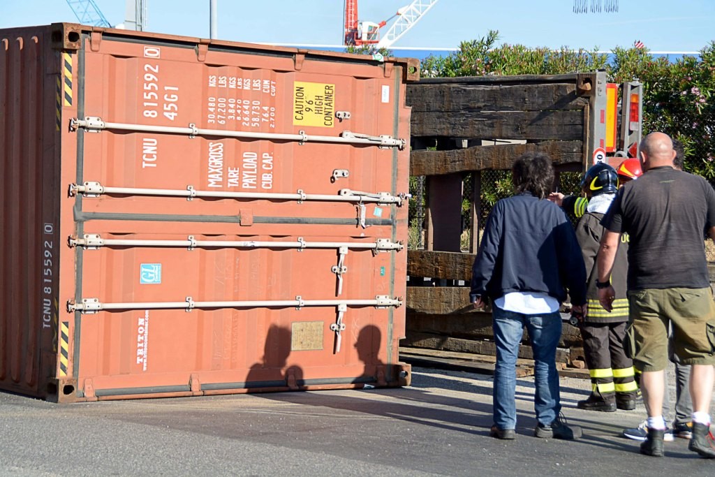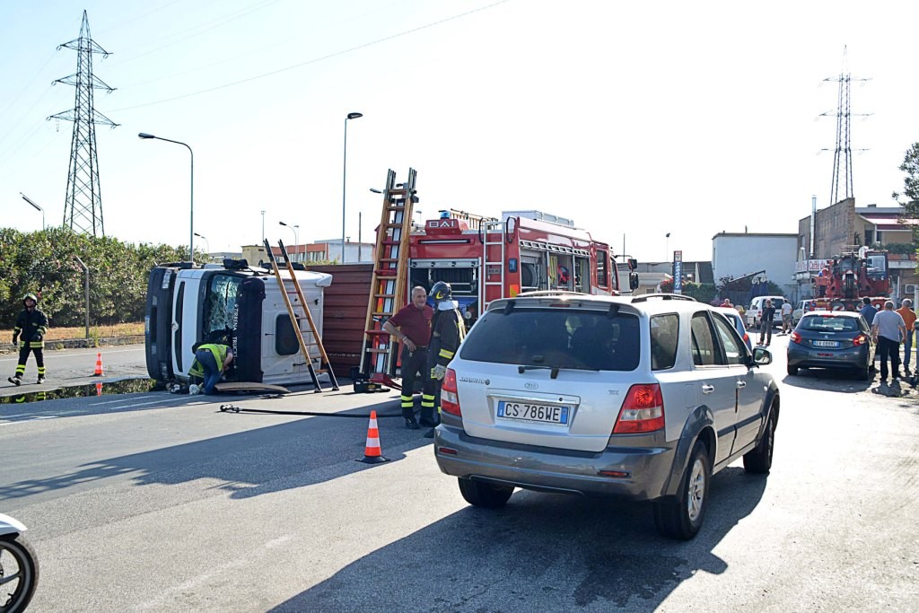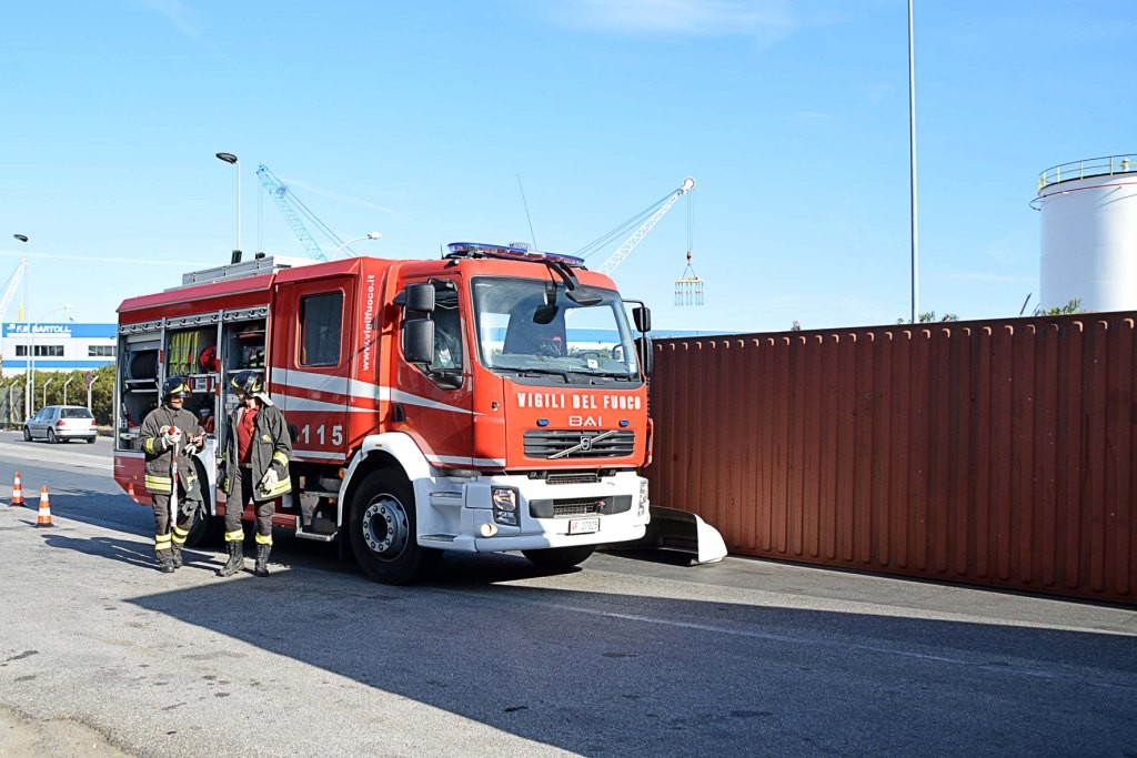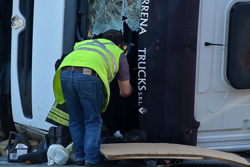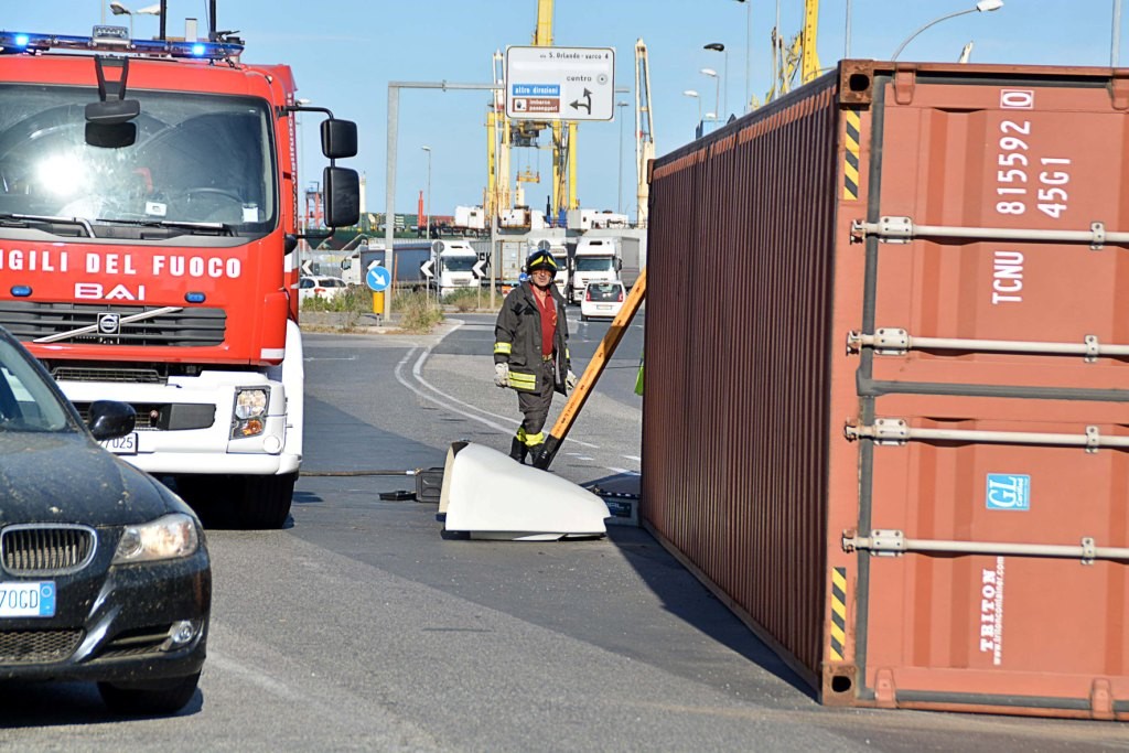 [Fotogallery] Tir si ribalta in via Leonardo da Vinci (foto Lanari)