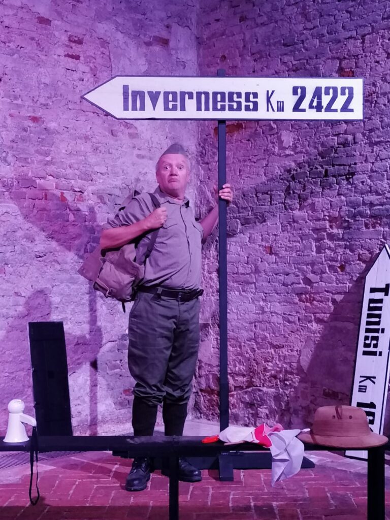 vogliamo invece raccontare la storia di un altro Dante, non l’Alighieri, ma Dante Fiorentini, vissuto a Coltano in provincia di Pisa. Alcuni anni fa, i figli e i nipoti, che ascoltavano spesso i suoi “racconti di guerra”, narrati a veglia nelle sere d’estate e conosciuti ormai da tutto il suo paese, lo convinsero a scrivere un piccolo diario, a mettere nero su bianco la sua narrazione orale. Nacque così “Soldato semplice Dante”, un piccolo libro, stampato dalle Edizioni il Campano di Pisa e diffuso nelle librerie locali. Dante partecipò a tutte le varie fasi della Seconda guerra mondiale, prima alla guerra di Grecia, partendo per l’Albania all’inizio del ’40, poi, dopo il risolutivo intervento tedesco, trasferendosi prima in Friuli e poi in Francia, dove furono mandati un manipolo di soldati italiani, per giustificare l’entrata in guerra dell’Italia. Infine, fece parte dell’esercito italiano impegnato nelle fasi finali della cosiddetta “guerra d’Africa”, dove, fatto prigioniero dagli inglesi, fu trasferito in un campo di prigionia in Scozia, nella città di Inverness, vicina al famoso lago di Lochness, quello del mostro. Qui rimase, insieme ai suoi compagni, possiamo dire quasi dimenticati dalla storia, fino alla primavera del ’46, quando il capo del governo italiano Ferruccio Parri, a guerra ormai stra- finita, li reclamò per contribuire, disse lui, alla “ricostruzione nazionale”. Nella sua guerra il nostro Dante, non incontrò né un morto, né un ferito, (solo un morto per un incidente balistico, causato dal malfunzionamento di un otturatore), incontrò la fame, a volte la sete e i pidocchi. Ebbe invece ben presenti le contraddizioni umane, l’assurdità di quella guerra, come di tutte le guerre, il legame fraterno coi suoi compagni, una stima che lo accompagnò sempre, aldilà del grado che ebbe. Lo spettacolo nasce dal suddetto libro e da lunghe chiacchierate-interviste con Dante, fatte alcuni anni fa, nella sua casa di Coltano e nel suo orto. Non c’è l’Alighieri, ma non manca però la poesia, perché insieme ad Angelo Cacelli, siamo appunto partiti dalla passione di Dante Fiorentini per il canto del maggio, l’ottava rima, il Guerrin meschino, l’Ariosto ed infine il sommo poeta Dante Alighieri.