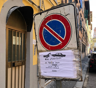 In via del Seminario dal 13 ottobre è presente un cartello che indica il divieto di parcheggio per un lungo tratto di strada