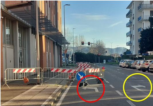 Da molto tempo su viale Fabbricotti è presente un tratto di strada completamente transennato che impedisce il passaggio dei pedoni sul marciapiede e che restringe la corsia per chi deve svoltare a sinistra. Va bene la presenza del cartello che indica un restringimento di carreggiata ma la segnaletica orizzontale in prossimità delle transenne forse dovrebbe essere rivista. La freccia bianca che svolta a sinistra dovrebbe essere momentaneamente cancellata, mentre la freccia direzionata a destra dovrebbe diventare di colore giallo, poiché presente un cantiere, e con l’indicazione di svoltare a sinistra. Allo stato attuale chi deve svoltare a sinistra rimane interdetto e confuso su quale carreggiata posizionarsi e se sia effettivamente possibile farlo dopo il tratto transennato. Ma se per i mezzi c’è almeno una segnaletica di restringimento di carreggiata, per i pedoni non c’è alcun avvertimento di interruzione di passaggio a piedi sul marciapiede. Si assiste quindi a persone che, non potendo proseguire il loro percorso sul marciapiede, si “lanciano” sul lato opposto della strada facendo un pericoloso slalom tra le auto. Addirittura tra i pedoni c’è chi costeggia le transenne rischiando la propria incolumità ad ogni passaggio di mezzi. Inoltre non si è pensato neanche alle persone diversamente abili o a persone con i passeggini, che rischiano ogni giorno. ACI Livorno richiede in questo caso l’installazione di un cartello dedicato ai pedoni che avverta l’interruzione del passaggio e di un attraversamento pedonale di colore giallo per consentire agli stessi pedoni di poter attraversare la strada insicurezza. In conclusione vista la criticità dell’area, è opportuno intervenire in maniera puntuale sia per quanto riguarda il transito pedonale che veicolare; un protrassi di tale situazione che vede i pedoni senza un percorso in sicurezza definito e con le macchine che si ritrovano l’unica corsia per svoltare a sinistra chiusa fino agli ultimi metri prima del semaforo che ne consente comunque la svolta, comporta un forte disorientamento che potrebbe portare a problematiche ben gravi.