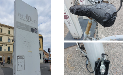Dopo la segnalazione di scooter abbandonati all’angolo di piazza della Repubblica proseguiamo, scrive Aci Livorno in un comunicato, il nostro viaggio attraverso quello che sembra essere uno stato di abbandono che riguardano alcune iniziative che sono partite bene ma che poi sono state in un qualche modo abbandonate a se stesse. È il caso del servizio di bike sharing che come detto dall’assessore Giovanna Cepparello doveva essere un incentivo all’uso della bicicletta. Ricordiamo che quella del bike sharing è un’iniziativa che rientra nell’ambito della revisione degli accordi con Tirrenica Mobilità, che gestisce anche questo servizio. Recandoci in Piazza Cavour abbiamo notato come lo stato delle biciclette disponibili per il noleggio non versino in ottime condizioni, anzi, completamente piene di ruggine, sellini “rattoppati” con scotch, lumini rotti e cestini utilizzati come contenitori per la spazzatura. Quello che però salta ancora più agli occhi è il degrado in cui versa il totem collocato a lato delle biciclette, completamente illeggibile, scolorito dal tempo, dall’incuria e dai tanti graffiti che oscurano le scritte del servizio offerto. Ci chiediamo come si possa capire, senza leggere le indicazioni, come usufruire e utilizzare i mezzi a noleggio. Da molti anni Aci Livorno si batte per promuovere un città all’insegna dell’eco-sostenibilità ambientale e urbanistica, ma la domanda è se Livorno sia davvero pronta a promuovere e realizzare nuovi progetti per accogliere ed offrire efficienti servizi eco-sostenibili. Abbiamo messo a disposizione le nostre competenze per offrire aiuto e unire le idee per la realizzazione di progetti che potessero rendere la nostra città più vivibile ed eco-sostenibile, ma ad oggi questa opportunità di crescita e confronto non è stata richiesta ed accolta.