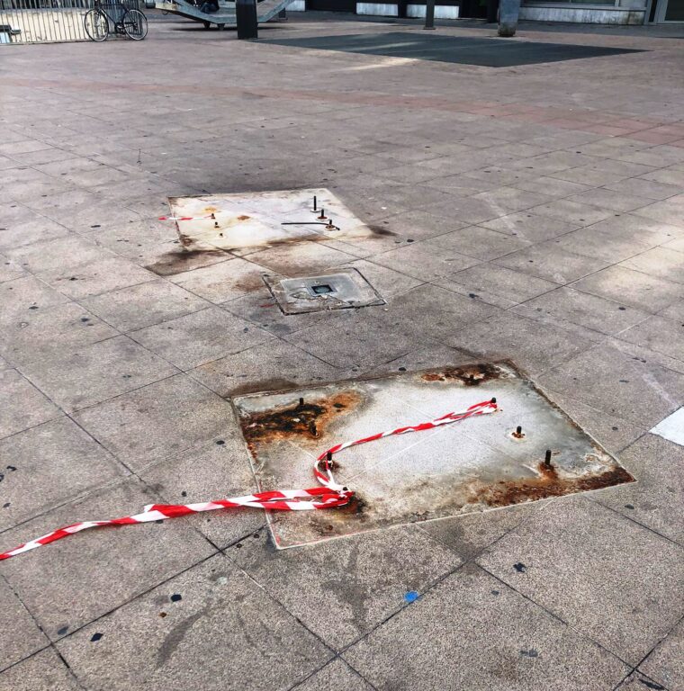 Buongiorno a tutta Livorno. Volevo segnalare una situazione a mio avviso pericolosa: da quando hanno tolto momentaneamente la A di Spagnoli dal centro di piazza Attias sono rimasti questi pericoloso spunzoni in terra dove è facile, a mio avviso, che qualche bambino, adulto o anziano si possa far male, cascare o ferirsi.
