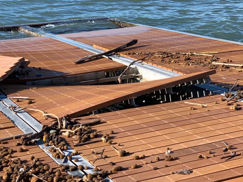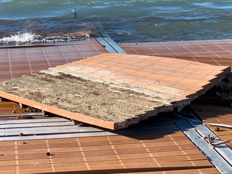 Il pontile alla Bellana è ormai devastato e va alla deriva. Alla prossima mareggiata è probabile che i pezzi si dovranno recuperare in mezzo al mare. E’ possibile fare qualcosa per evitare che questo accada?