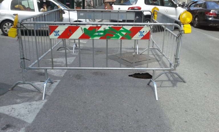 Questa buca è stata messa in sicurezza con delle transenne circa 3 settimane fa. Queste ultime costituiscono un ingombro notevole in strada e costringono le auto provenienti da via Spalato che svoltano verso piazza Roma a invadere la corsia opposta. Dato che ritengo che non ci voglia poi così tanto a sistemarla, vorrei chiedere agli uffici preposti alla manutenzione stradale quanto dovremo ancora aspettare per vedere risolta la situazione.