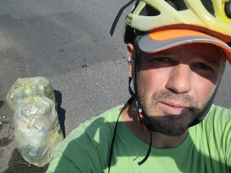 L’11 settembre sono andato diretto al fosso di via Boccherini. I miei occhi facevano finta di non vedere i sacchi pieni di immondizia (bottiglie di plastica e di birra). Mi chiedo perché l’essere umano compie questi gesti che io davvero faccio fatica a comprendere; chiaramente tutto questo non mi spaventa: mi dispiace per la natura o per un fosso che rischia con l’accumulo di spazzatura di fare tappo nei punti più delicati. La cosa più bella di quel momento sono stati i residenti che mi hanno ringraziato. Alla fine ho fatto due sacchi pieni di immondizia per un totale di più di 20 chili e per fortuna che è passata un’operatrice ecologica di Aamps che io ringrazio tantissimo di cuore che ha caricato i sacchi perché io dovevo scappare al lavoro.