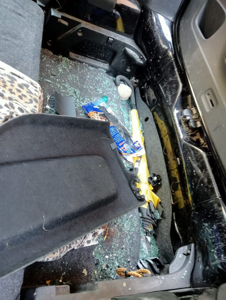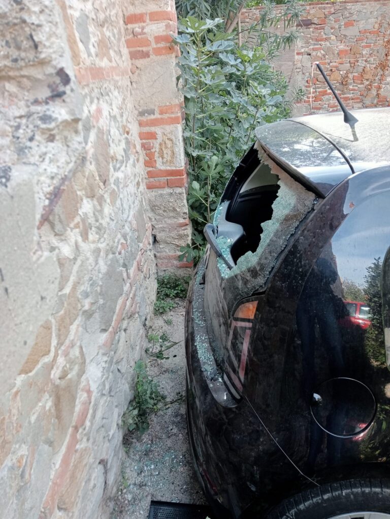 Nella notte passata ci sono state anche degli atti vandalici, allego foto, dove sono stati rotti i vetri alle auto e rubato all’interno.