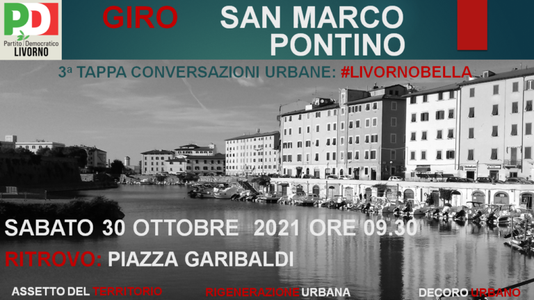Continuano le Conversazioni Urbane dopo le prime due tappe nel quartiere di San Jacopo e nelle frazioni di Montenero e Castellaccio. Il quartiere protagonista della terza tappa sarà quello di San Marco Pontino. Il ritrovo è previsto per sabato 30 ottobre alle ore 9.30 in piazza Garibaldi e il giro proseguirà lungo la via Garibaldi, dentro il quartiere Pontino e si concluderà presso la Porta San Marco. Nel percorso si ascolteranno i residenti, i commercianti e le varie realtà associative. Questo appuntamento, come anticipato nella presentazione della campagna sulla cura della città, sarà propedeutico a un successivo evento pubblico con l’Amministrazione Comunale. Invitiamo pertanto la cittadinanza a partecipare.