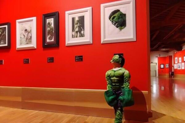 Un pomeriggio da… Hulk per Edoardo, 3 anni. Con la famiglia, che testuali parole della mamma “vive in Hulk tutto quello che è verde in questa fase della vita”, il piccolo Edo con la sorella maggiore Rebecca e i genitori Michela e Gabriele il 23 settembre pomeriggio ha visitato, tutto mascherato dalla testa ai piedi, la mostra “Simone Bianchi. L’arte dei supereroi” ai Granai di Villa Mimbelli (aperta fino al 12 novembre). “Volevamo condividere con voi l’entusiasmo di nostro figlio per la mostra – spiegano i genitori che ringraziamo per la disponibilità – Credo abbiate capito il suo personaggio preferito. Edoardo poi è rimasto un’ora davanti agli schermi presenti all’interno delle sale. Speriamo con questo articolo di aver invogliato tante famiglie che ancora non sono state ad andate a visitare la mostra. La mostra è molto bella e interessante anche da adulti”.