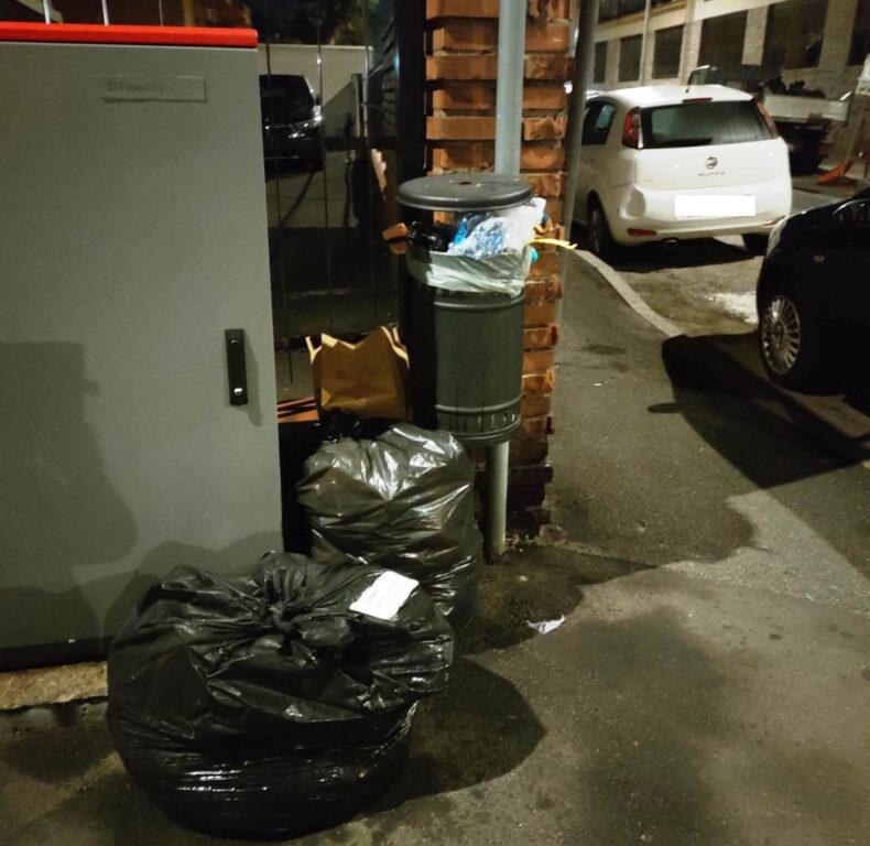 Buongiorno, persone incivili lasciano “sovente” rifiuti inadeguati al contenitore. Nello specifico hanno lasciato due sacchi neri, da ormai tre giorni. Gli operatori Aamps hanno applicato un adesivo “rifiuto non conforme” e… hanno lasciato li i sacchi. Vi chiedo per favore di rimuovere il tutto; i responsabili non si ravvedranno e noi ne pagheremo le conseguenze (gabbiani, topi, etc, ai quali non riusciremo ad applicare l’adesivo “animale non consono all’ambiente”).