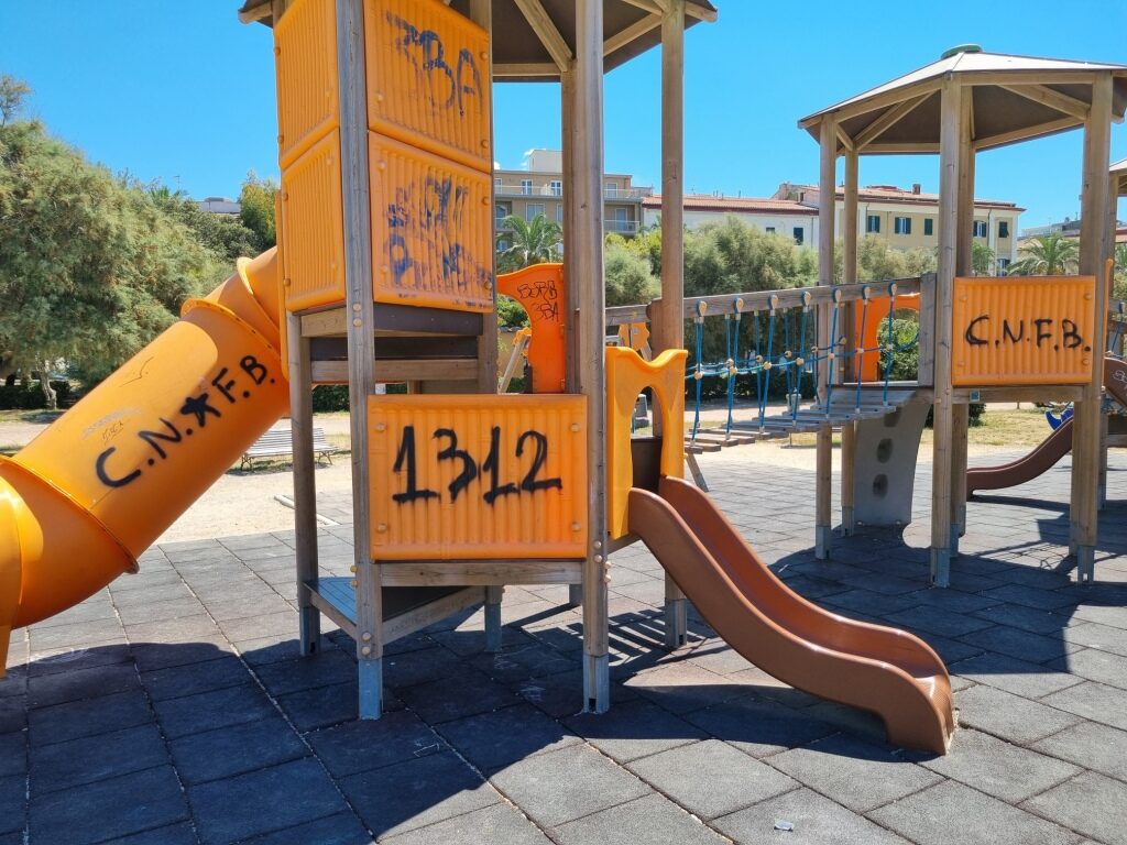 Scritte spray al parco giochi: “Non è stata la Curva”. Reset pulisce e ringrazia la Nord
