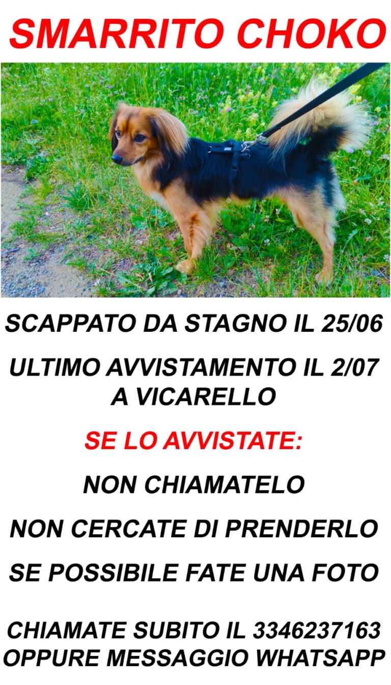 Dal 25 giugno sera, è ricercato disperatamente Choko, un cagnolino meticcio, simil volpino, che abita a Lorenza (Pisa).