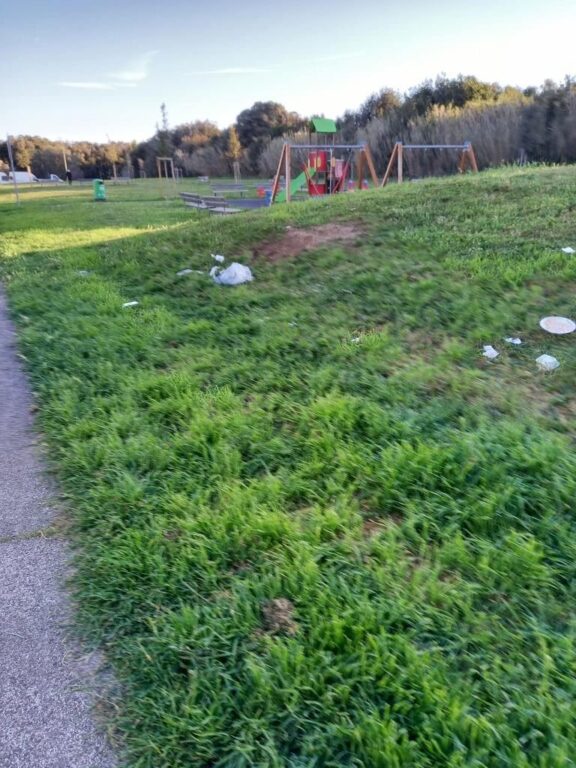 Sporcizia accanto ai giochi per bambini ad Antignano