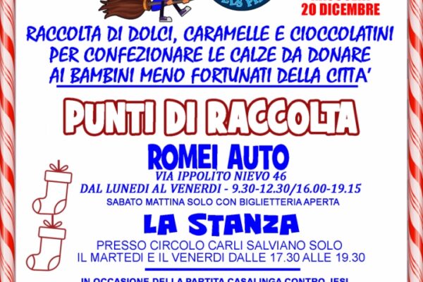 – BANCHETTO DOMENICA 15 DICEMBRE AL PALAMACCHIA in occasione della partita casalinga contro Jesi. Troverete all’ingresso il banchetto della raccolta.