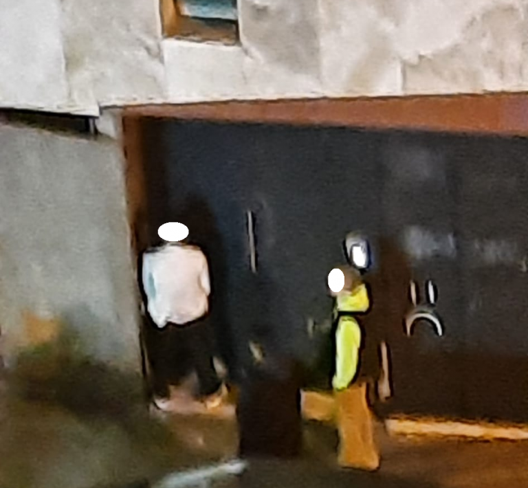 Ci risiamo, frequentatori di via Cambini presidiata da carabinieri, finanza, polizia, esercito, Goldrake, etc che orinano nei portoni. Foto in diretta delle 19.58 di venerdì 12 marzo 2021.