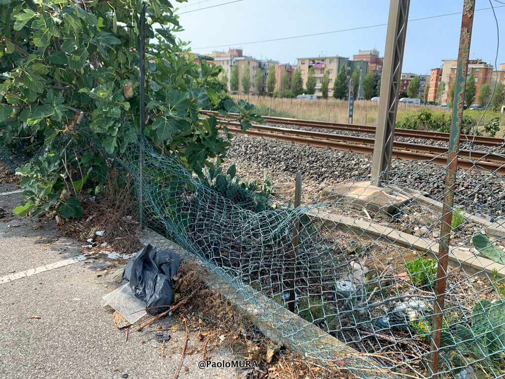 In queste foto oltre vedere lo sconcio che in questo piccolo angolo è diventato quotidiano, possiamo anche notare che qualche altro bel pensante non avendo altro che fare ha visto bene di abbattere la recinzione di sicurezza che dà sui binari, altra mancanza di senso civico che mette in pericolo chi incautamente potrebbe attraversare la linea ferroviaria. E in tutto questo continuiamo a girarci dall’altra parte, tanto occhio non vede cuor non duole.