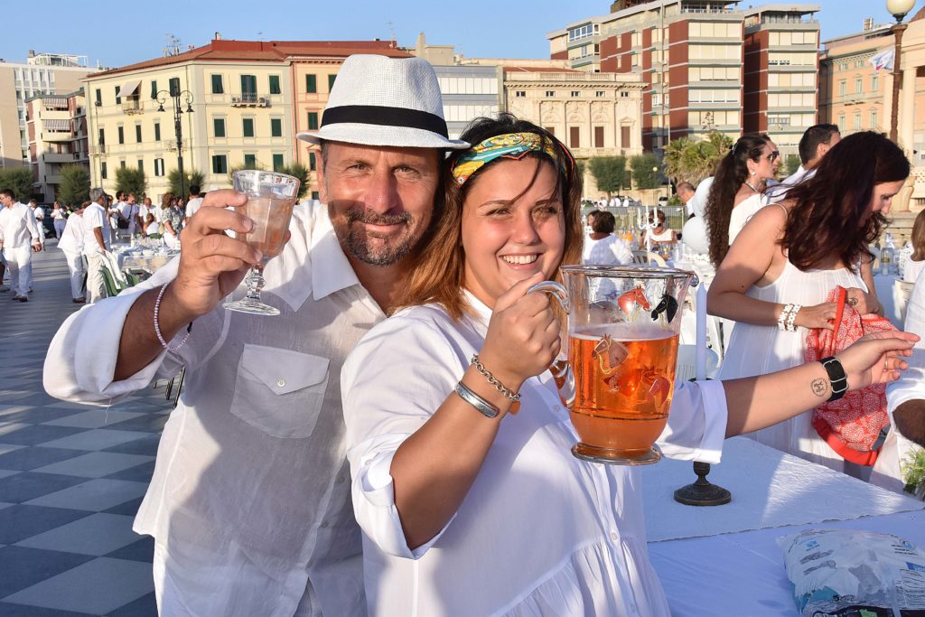 Circa seicento le persone che hanno colorato di bianco e di allegria lo “scacchiere” di una delle più belle location d’Italia. Sullo sfondo il tramonto, il mare e la nave Vespucci che ha salutato Livorno e ha ripreso la navigazione peri “Sette Mari”. Un mix mozzafiato che ha fatto gridare al successo gli organizzatori (Pro Loco, Reset, Comune di Livorno e Palio Marinaro) e ha lasciato con un bel sorriso e un bel ricordo i partecipanti. Come se non bastasse a rendere il tutto unico e indimenticabile, la bella sorpresa dell’evento musicale che ha arricchito la serata e che si è aggiunto all’altro evento in programma: la premiazione degli equipaggi del Palio Marinaro sul palco del Surfer Joe.