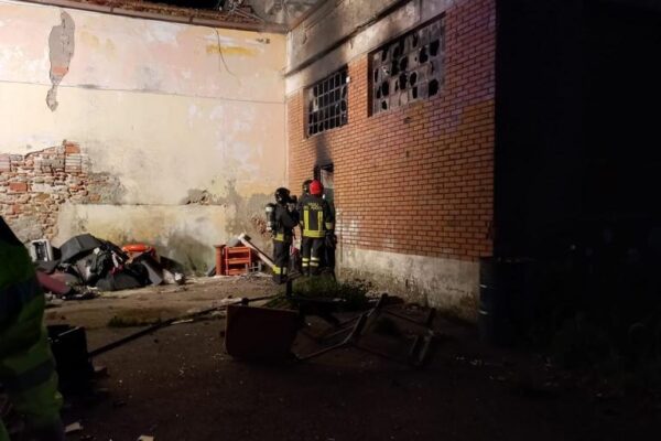 A fuoco capannone usato come rifugio: paura nella notte