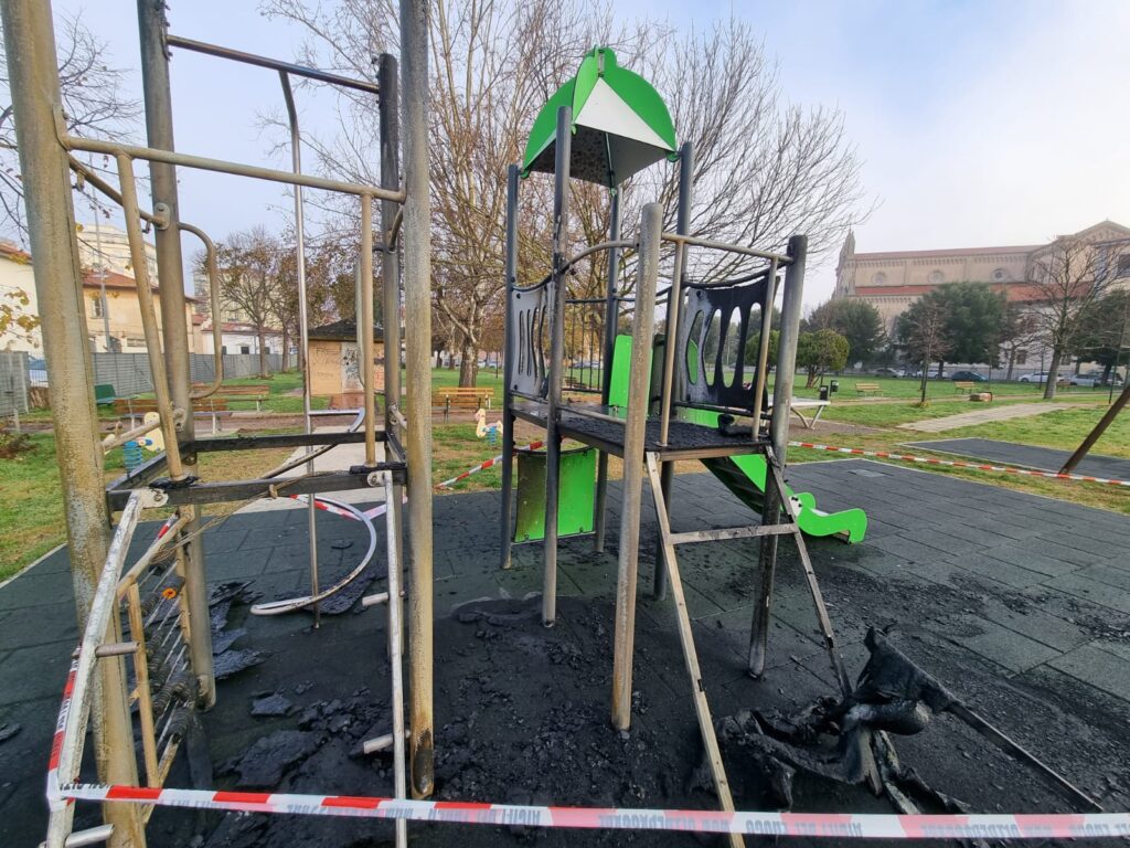 E' la prima volta che un incendio di questa portata coinvolge un parco giochi pubblico. Nel caso dei giochi al parco Masini si tratta di giochi nuovi, di neanche un anno. Prima passo la messa in sicurezza. Per fortuna, la struttura in acciaio ha resistito alle fiamme e quindi una volta pulita tornerà, diciamo così, nuova con l'acquisto di nuovi pannelli andati in fumo