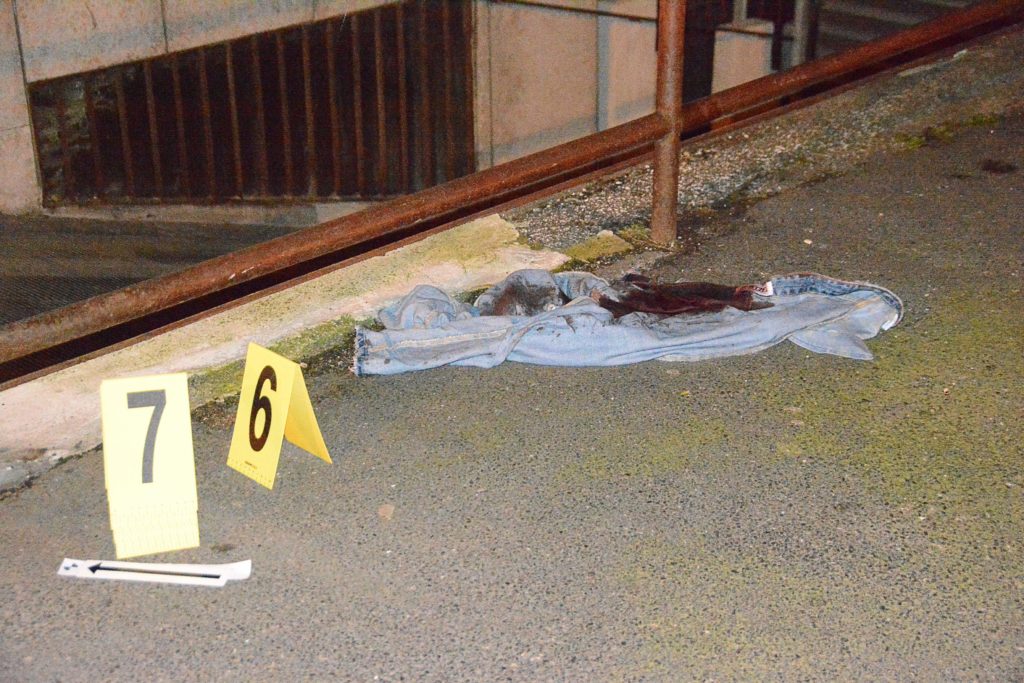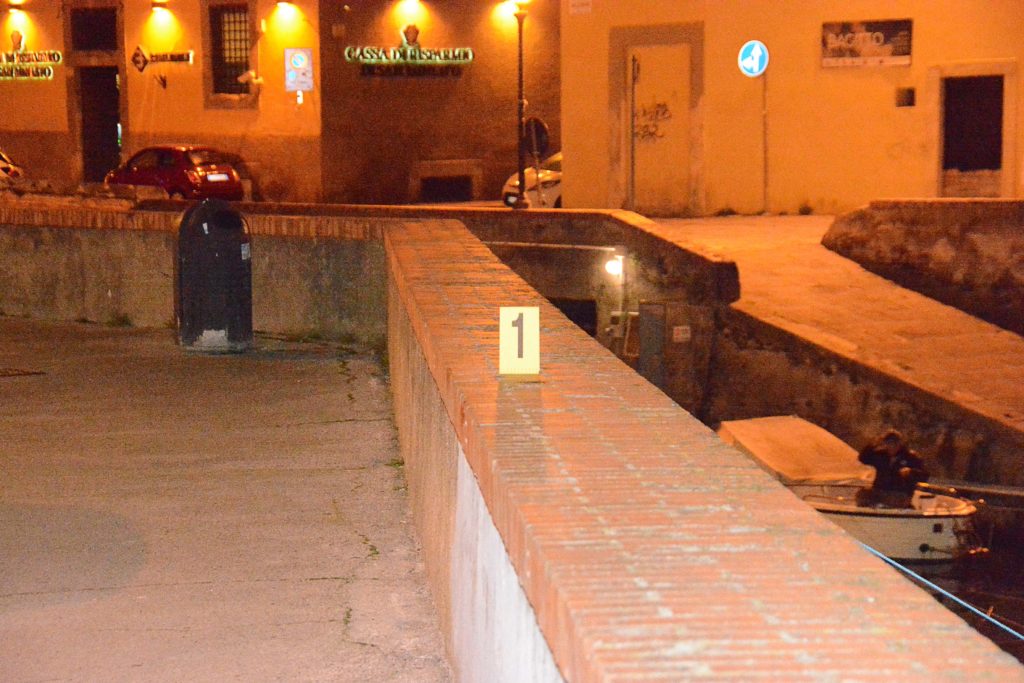 Il coltello, con il quale è stata ferita la vittima di 22 anni, rinvenuto dagli agenti della polizia sulla scena del crimine (Foto Lanari)Un cittadino in particolare ha seguito gli aggressori dando preziose indicazioni ai poliziotti che hanno trovato i responsabili poco dopo sugli scali Finocchietti ricoperti di sangue e piume d’oca del giacchetto del malcapitato. Il tunisino è stato soccorso da un’ambulanza che lo ha trasportato al pronto soccorso di Livorno in codice giallo. Sul luogo del crimine è stato trovato uno dei coltelli, spezzato in due, con il quale è stato ferito il 22enne. Secondo il racconto fornito agli agenti infatti l’aggredito sarebbe stato colpito da tutti e tre i marocchini che a turno lo avrebbero tagliato con i loro coltelli. “E’ una ricostruzione plausibile – spiega la dottoressa Olga Arganese, responsabile dell’Ufficio Prevenzione Generale e Soccorso Pubblico della questura di Livorno – Gli ottanta punti di sutura potrebbero significare un’aggressione plurima effettuata con più armi. L’intervento dei nostri uomini è stato svolto in maniera repentina e, anche grazie alla fattiva collaborazione di uno dei cittadini, siamo riusciti a fermare i responsabili. Siamo consci che quella dove è avvenuta l’aggressione, la zona Repubblica, sia una zona calda. Stiamo facendo il possibile per attenzionare maggiormente il quartiere. Lo dimostra il fatto che una pattuglia si trovava a pochissima distanza dall’aggressione”.