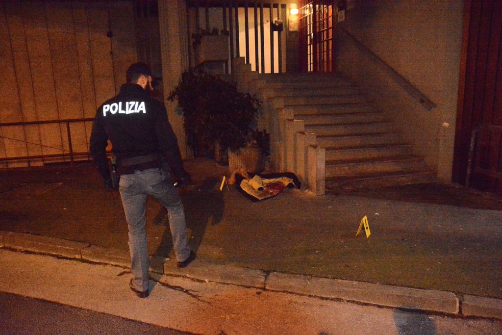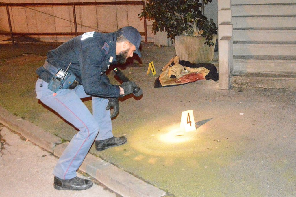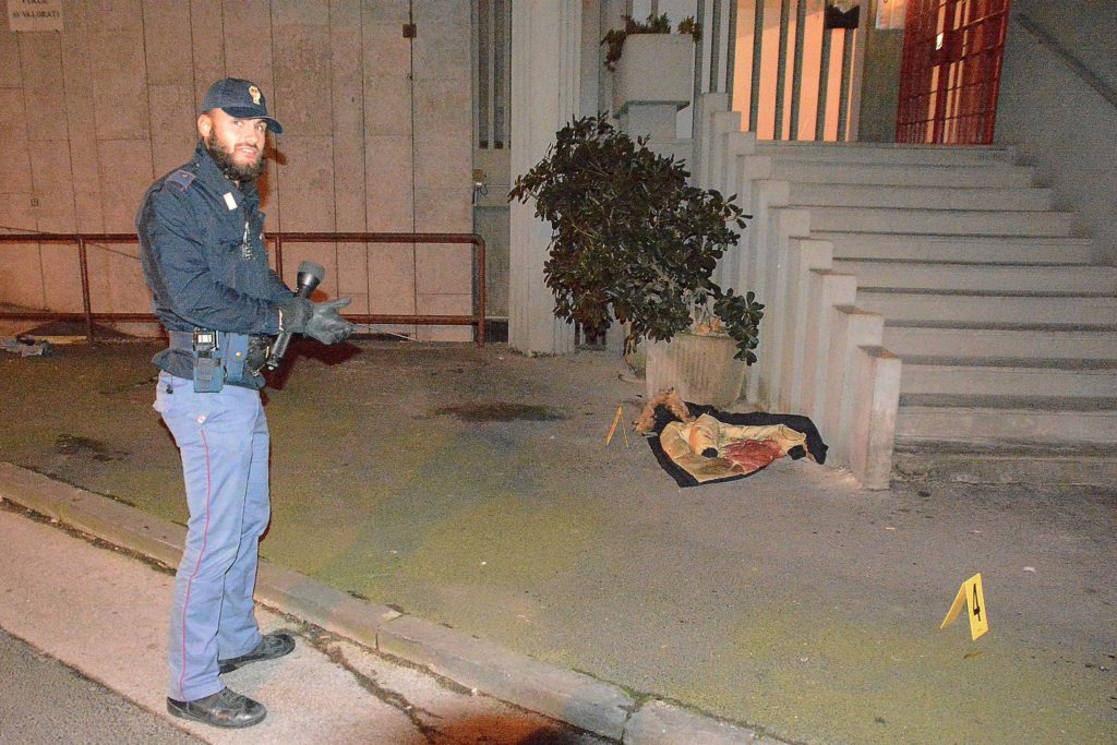 Un agente di polizia sul luogo dell’accoltellamento in via degli Avvalorati (foto Simone Lanari)I tre marocchini sono stati prima fermati e interrogati per tutta la notte e infine arrestati con l’accusa di rapina e lesioni aggravate. La vittima ha lamentato la sparizione del portafoglio con all’interno duecento euro, un passaporto e un cellulare Samsung Galaxy Note 2 della moglie. La refurtiva, come le presunte altre due armi da taglio, non sono state al momento rinvenute da parte degli investigatori intervenuti nell’immediatezza dei fatti sul posto anche con gli agenti della scientifica i quali hanno apposto sul luogo i noti cartellini gialli, contraddistinti da numeri neri, per evidenziare alcune prove o elementi utili all’indagine. I tre arrestati sono attualmente in carcere alle Sughere in attesa dell’udienza di convalida in programma nelle prossime ore.