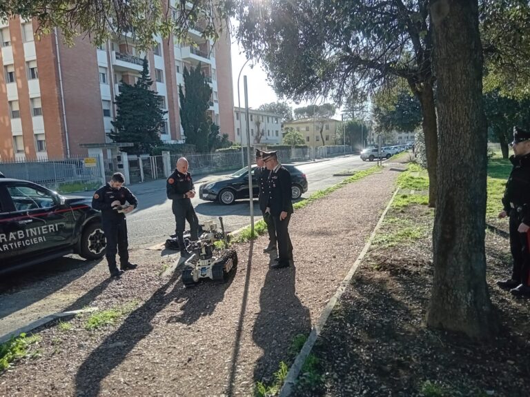 Nel pomeriggio di oggi il nucleo artificieri antisabotaggio dei carabinieri è intervenuto al parco pubblico in via Goito, angolo via Orlandi, per un pacco sospetto. Si trattava di un pacchetto di cartone rettangolare appoggiato in un luogo appartato nei pressi di un tronco tagliato. I militari dell’Arma, assistiti dai vigili del fuoco, hanno fatto allontanare i presenti transennando l’area per consentire al robottino degli artificieri di ispezionarne il contenuto. Sul contenuto, risultato innocuo, gli investigatori preferiscono mantenere il massimo riserbo. Presenti sul posto, oltre ai carabinieri, Svs polizia municipale e vigili del fuoco.