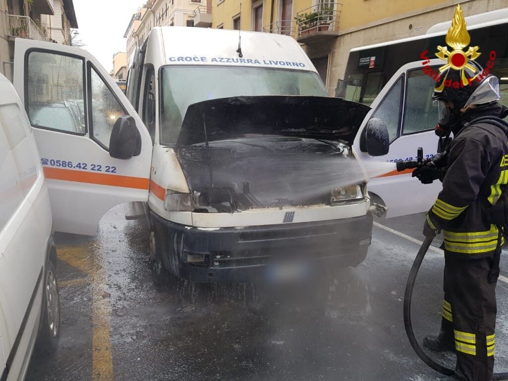 Intervento dei vigili del fuoco di Livorno in via Marradi, nel tratto compreso tra via Nardini Despotti Mospignotti e via Mangini, in seguito ad un incendio che ha coinvolto un mezzo di soccorso della Croce Azzurra in transito. Il tutto è accaduto intorno alle 9,30 davanti agli occhi spaventati dei tanti passanti.