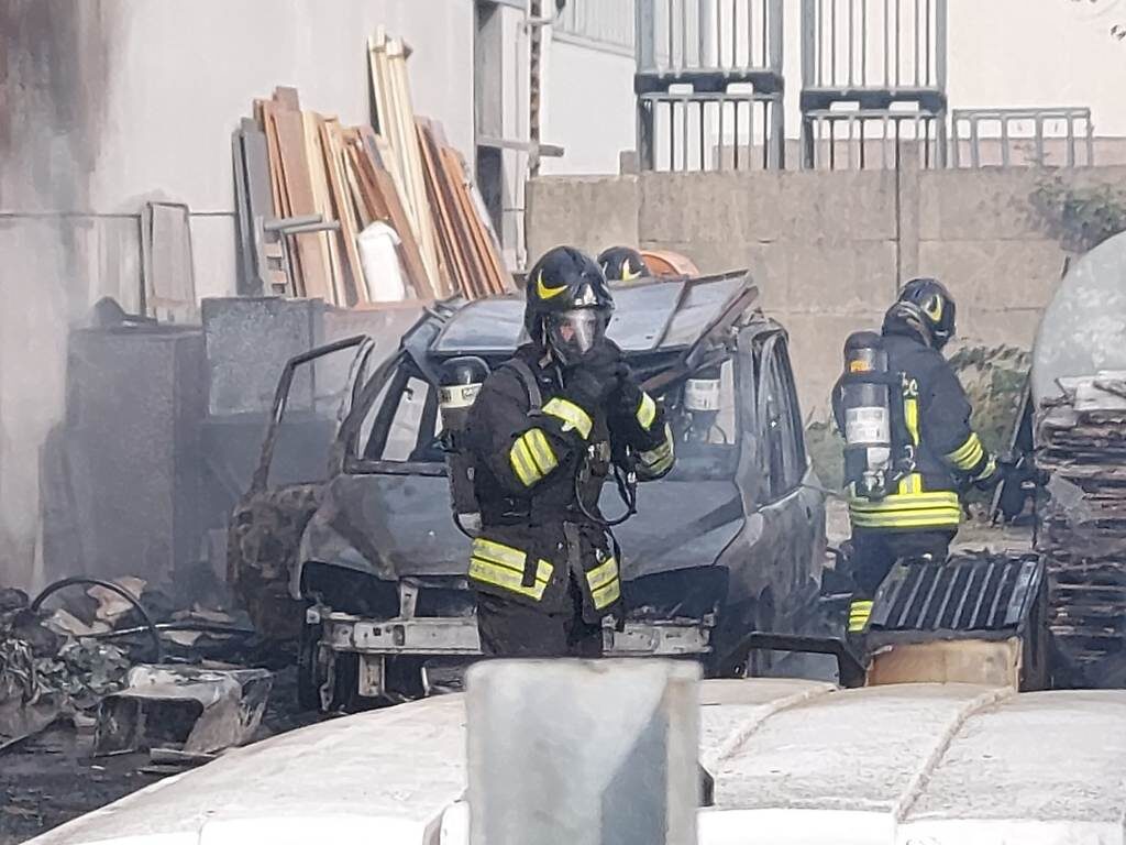 Auto a fuoco nel piazzale di una ditta