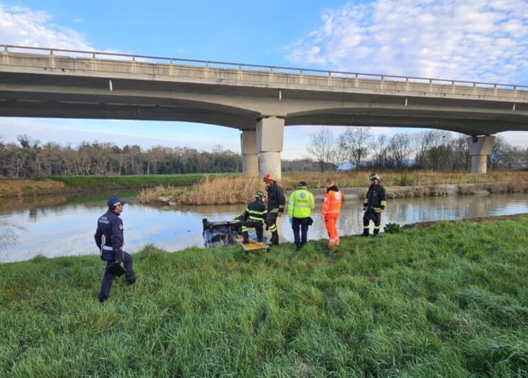 Auto nel Canale Imperiale lungo la strada statale Arnaccio, all’altezza del Biscottino. E’ accaduto nel corso della notte tra il 16 e 17 febbraio perché, come racconta la squadra con medico a bordo della Pubblica Assistenza di Collesalvetti, “quando siamo arrivati noi intorno alle 8 di stamattina, allertati a seguito della segnalazione di un automobilista di passaggio al 112 NUE, all’interno dell’auto abbiamo scoperto che non vi era nessuno. Per fortuna”. Sul posto, oltre al 118, i vigili del fuoco di Cascina con una squadra Saf (speleo-alpino-fluviale) e due pattuglie della polizia municipale. I due occupanti verosimilmente erano già riusciti ad uscire da soli dopo l’incidente.