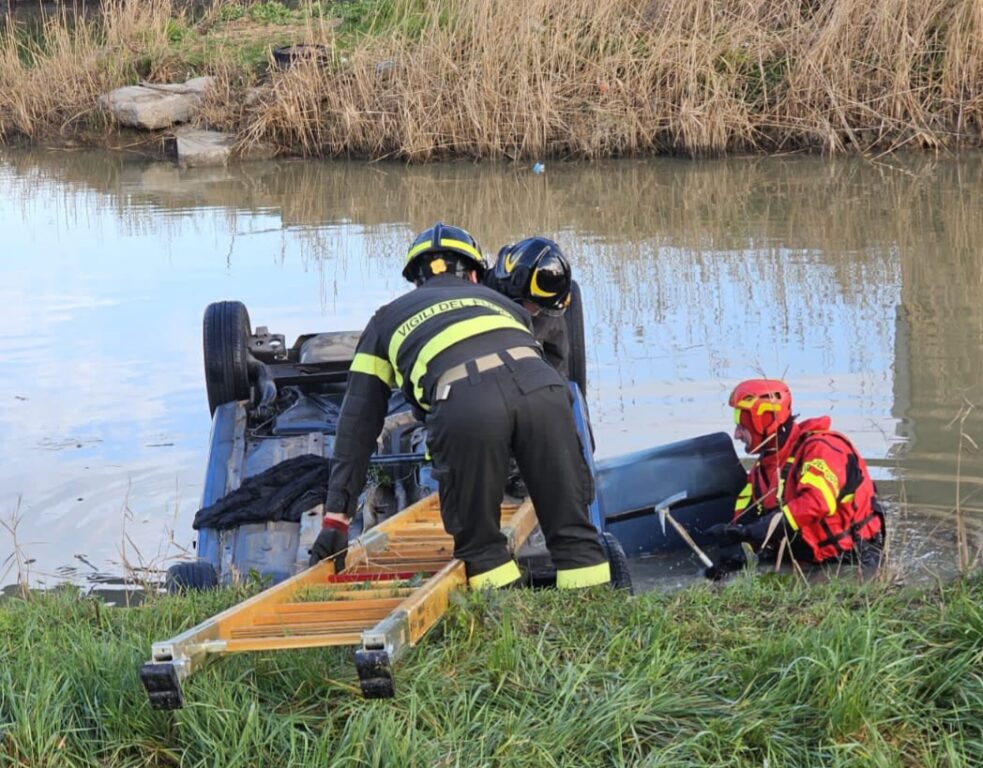 All'arrivo dei soccorsi, la scoperta: all'interno dell'abitacolo per fortuna non c'era già più nessuno. L'auto era finita nel Canale Imperiale lungo la strada statale Arnaccio, all'altezza del Biscottino, e i due occupanti verosimilmente erano già riusciti ad uscire da soli dopo l'incidente