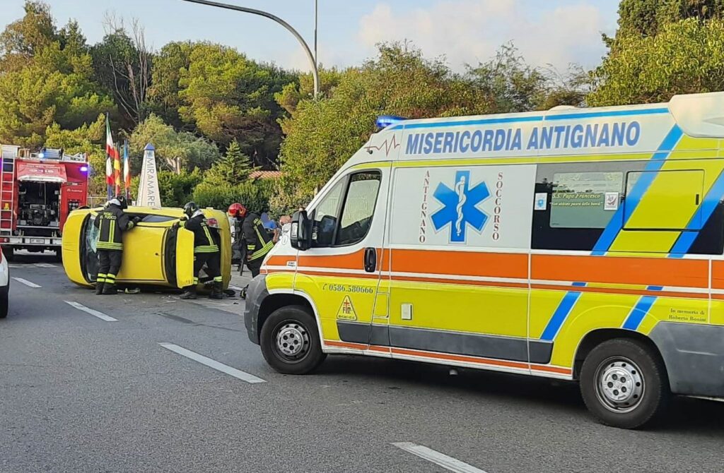 Auto ribaltata ad Antignano