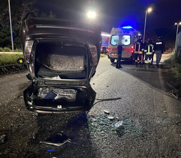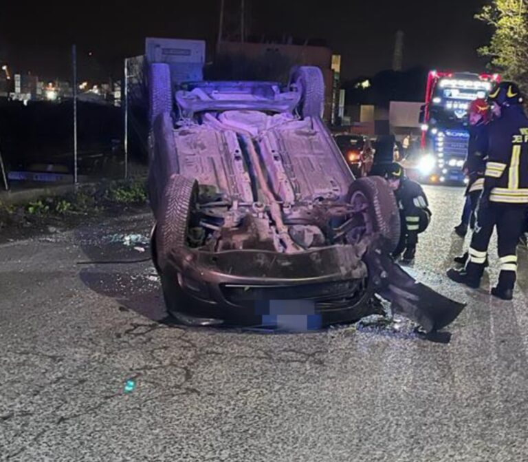 Un’auto è finita ribaltata sul tettino con le quattro ruote rivolte verso il cielo. L’incidente è avvenuto nella notte tra lunedì 26 e martedì 27 dicembre in via Firenze. Sul posto si sono precipitati per le cure del caso i volontari della Svs intervenuti da via San Giovanni insieme ai vigili del fuoco e agli agenti della polizia. Ancora da chiarire la dinamica del sinistro stradale. Rimasta ferita solo la conducente, ma in maniera lievissima, e leggermente sotto shock per la dinamica dell’incidente.
