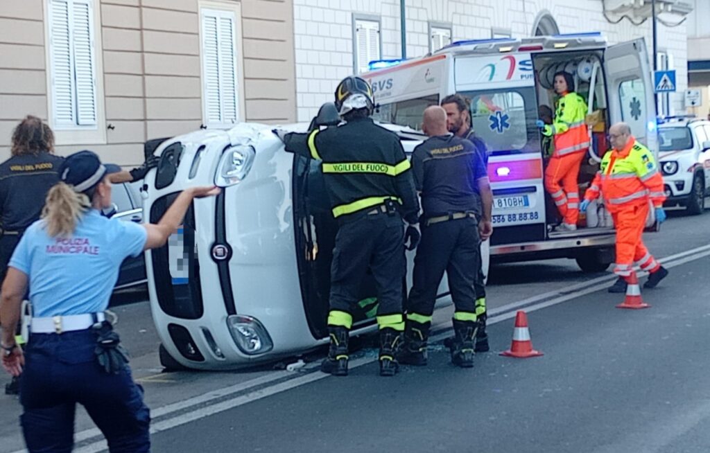 Auto ribaltata su un fianco in viale Italia. L’episodio è avvenuto all’altezza dei Bagni Pancaldi, direzione nord. Il conducente e il passeggero sono rimasti illesi, per fortuna. Sul posto vigili del fuoco, Svs e due pattuglie della polizia municipale per ricostruire la dinamica. Il traffico procede regolato dalla pattuglia della municipale.